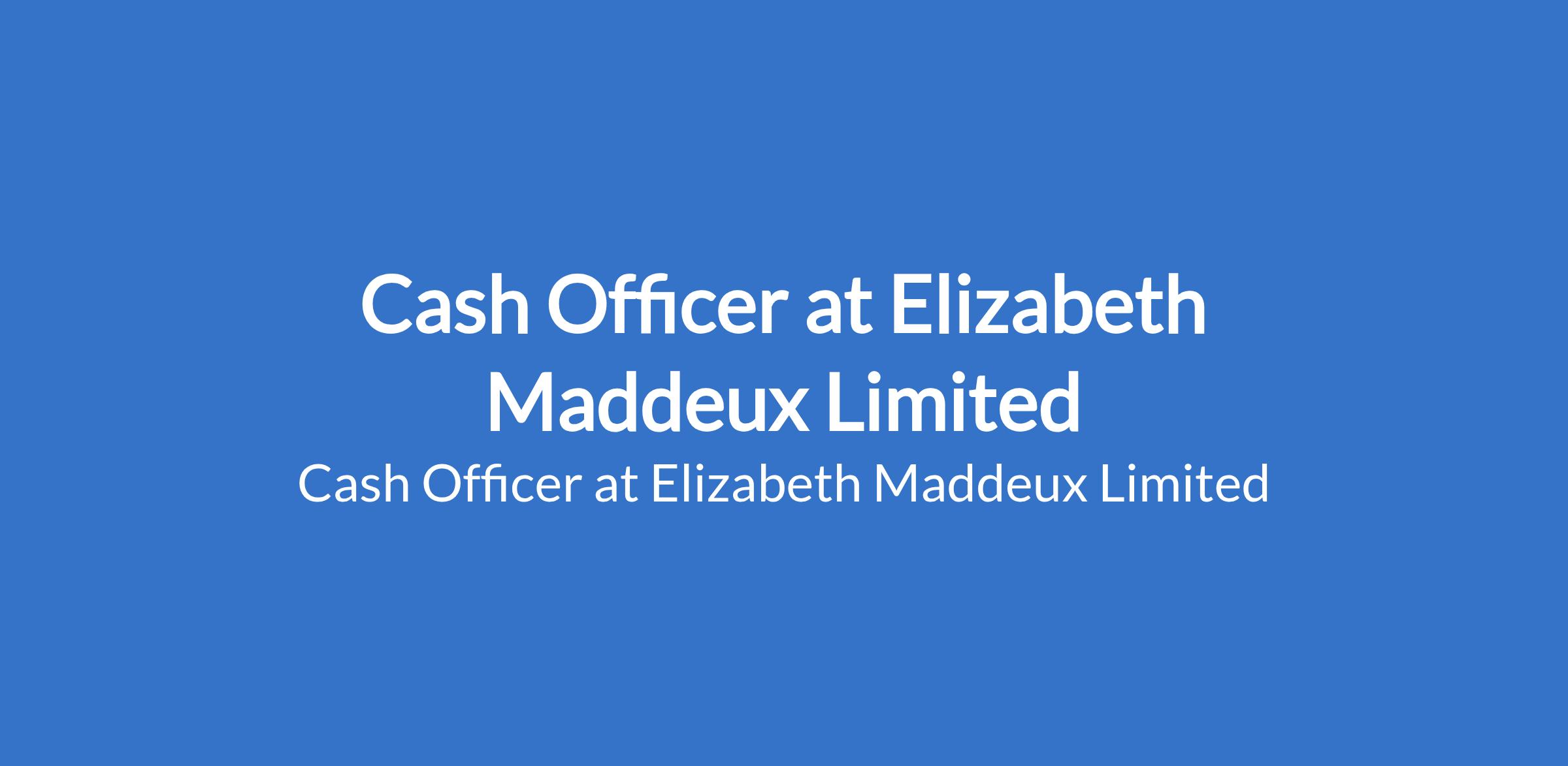Elizabeth Maddeux Limited is recruiting to fill the position of: Cash Officer. Salary: N200,000 - N250,000 per month. Interested candidates should possess a Bachelors Degree in Accounting, Finance, or a related field with 24 years experience in cash management or financial operations.