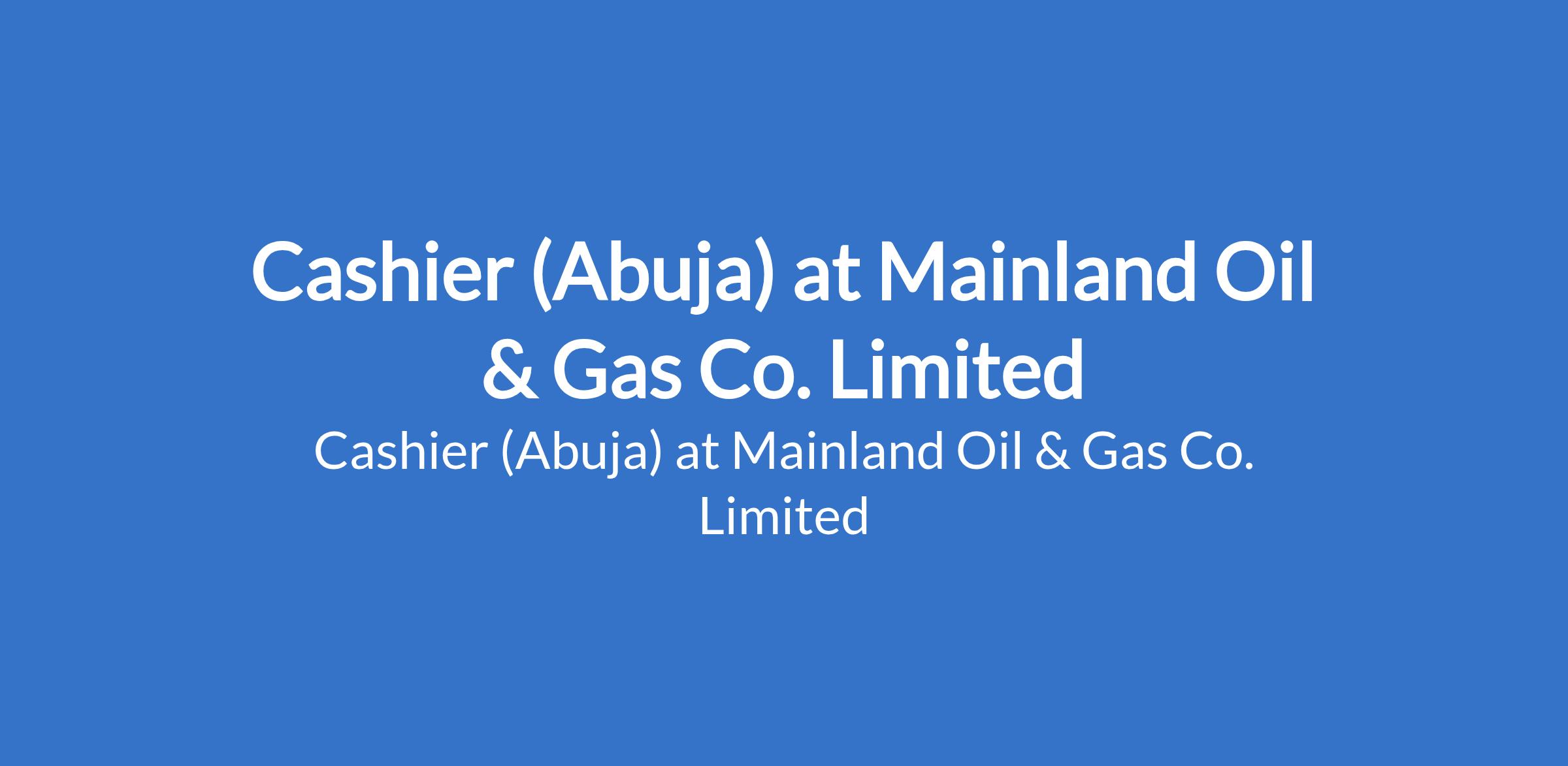Cashier (Abuja) at Mainland Oil & Gas Co. Limited