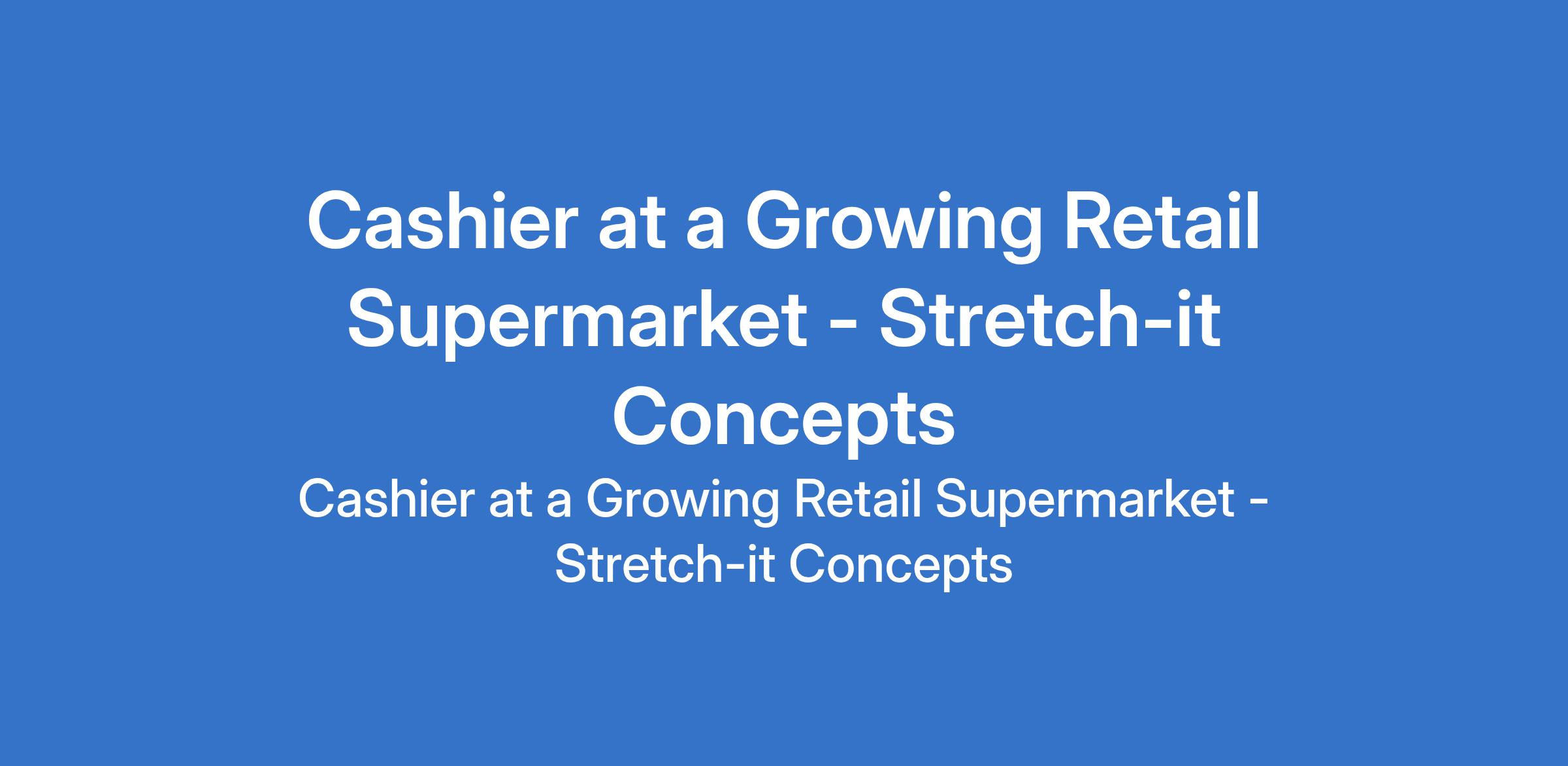 Stretch-it Concepts - Our client, a Growing Retail Supermarket is recruiting to fill the position of: Cashier. The position is located in Lagos State. Interested candidates should possess an OND qualification with Previous experience as a cashier or in a similar role is an advantage.