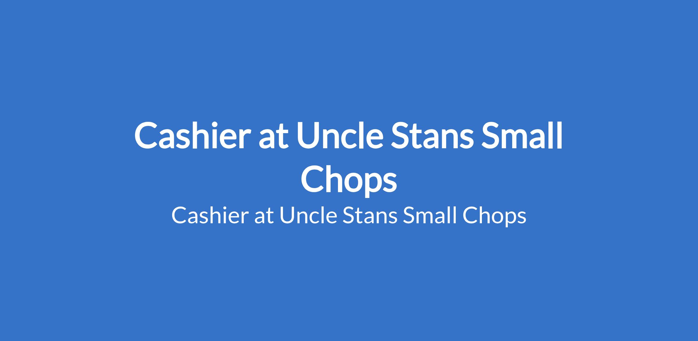 Uncle Stans Small Chops is recruiting to fill the position of: Cashier. The position is located in Osapa | Surulere | Ikoyi | Admiralty, Lagos State. Salary: N100,000 per month. Interested candidates should possess a minimum of OND or HND qualification in any relevant field, and must reside near the outlet or in areas that allow easy commuting.