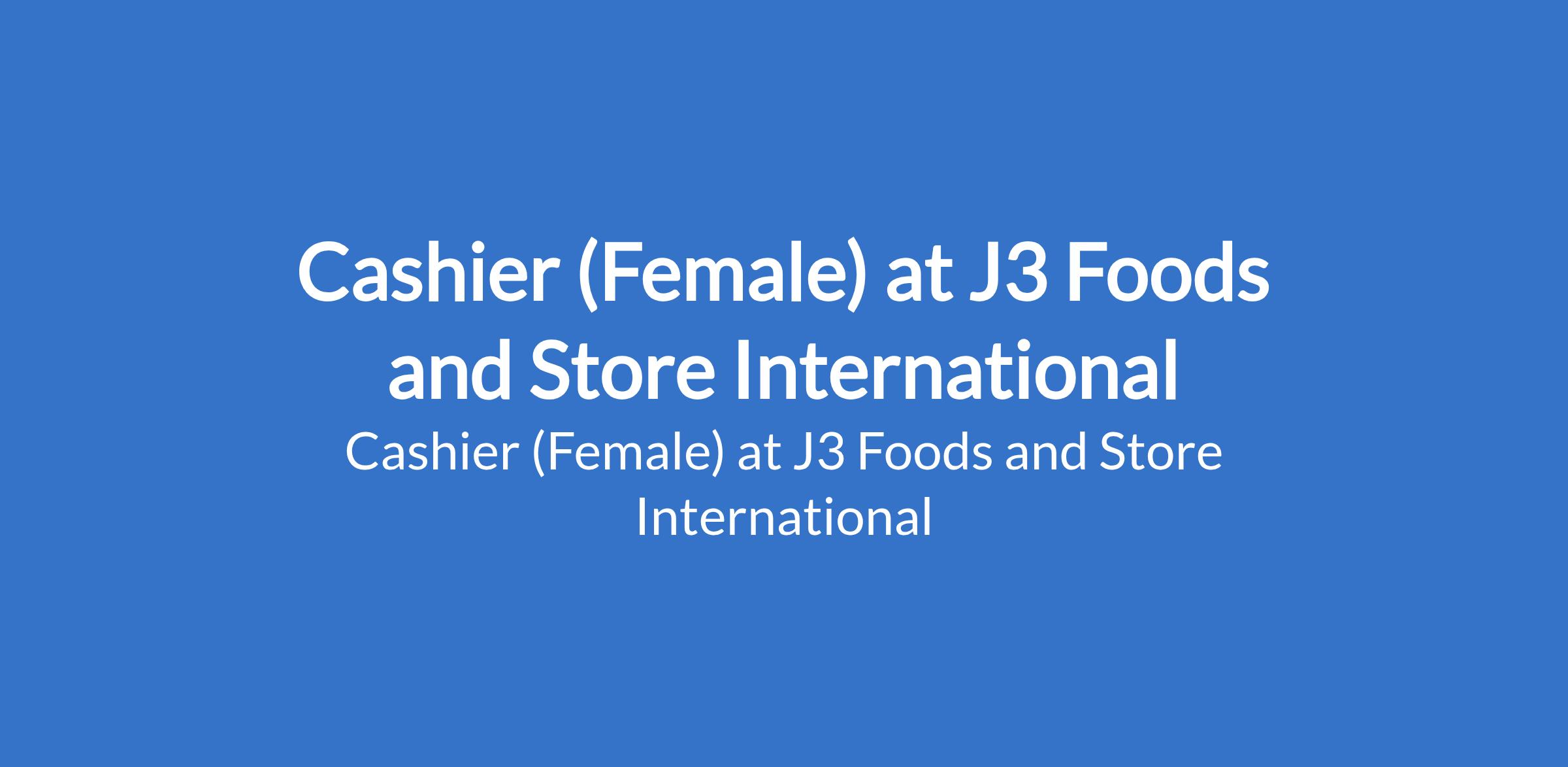 Cashier (Female) at J3 Foods and Store International