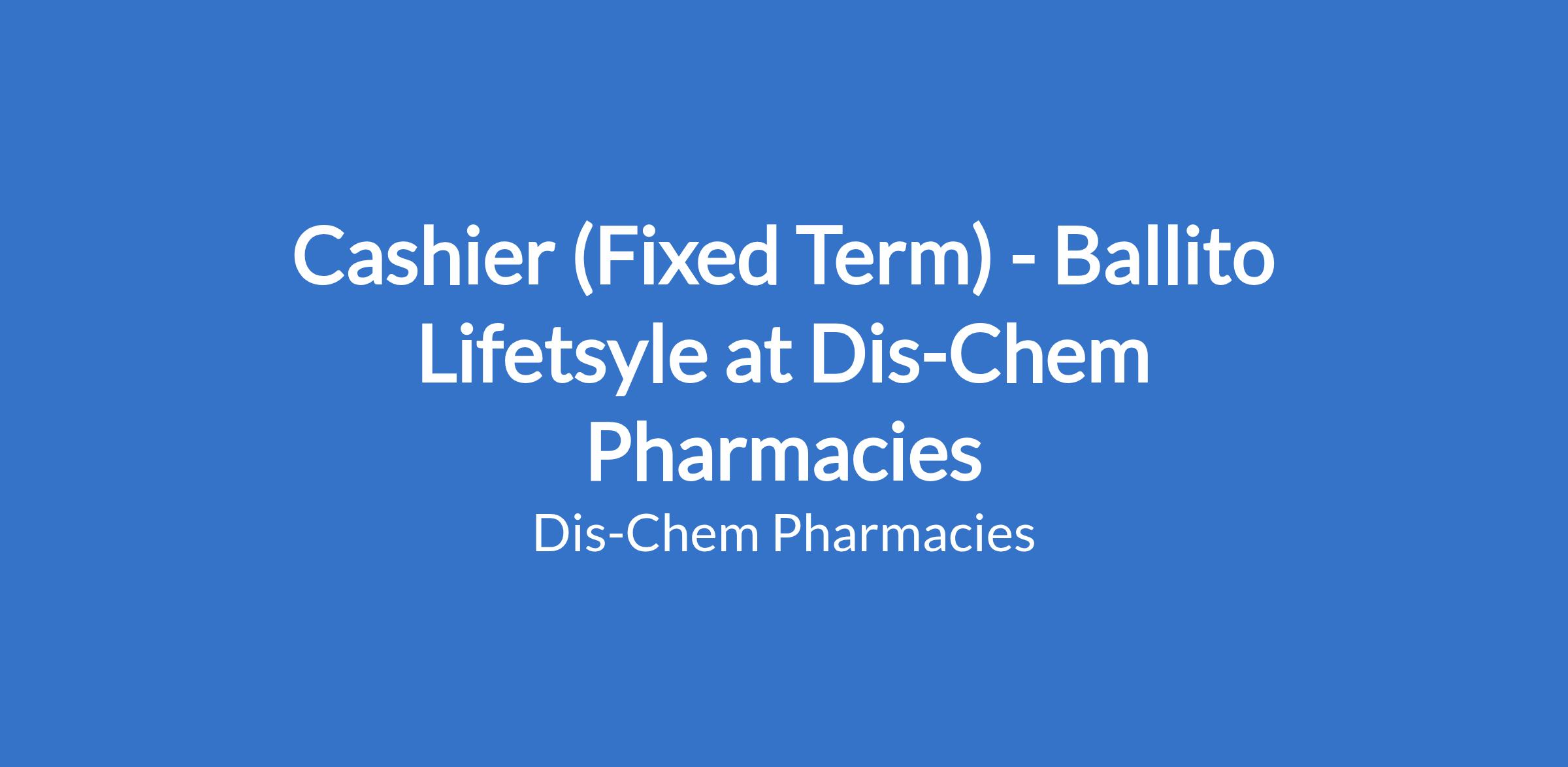 Dis-Chem Pharmacies requires an experienced Fixed Term Cashier for their Ballito Lifestyle store.To Support customer service at point of sale while ensuring a world-class shopping experience.