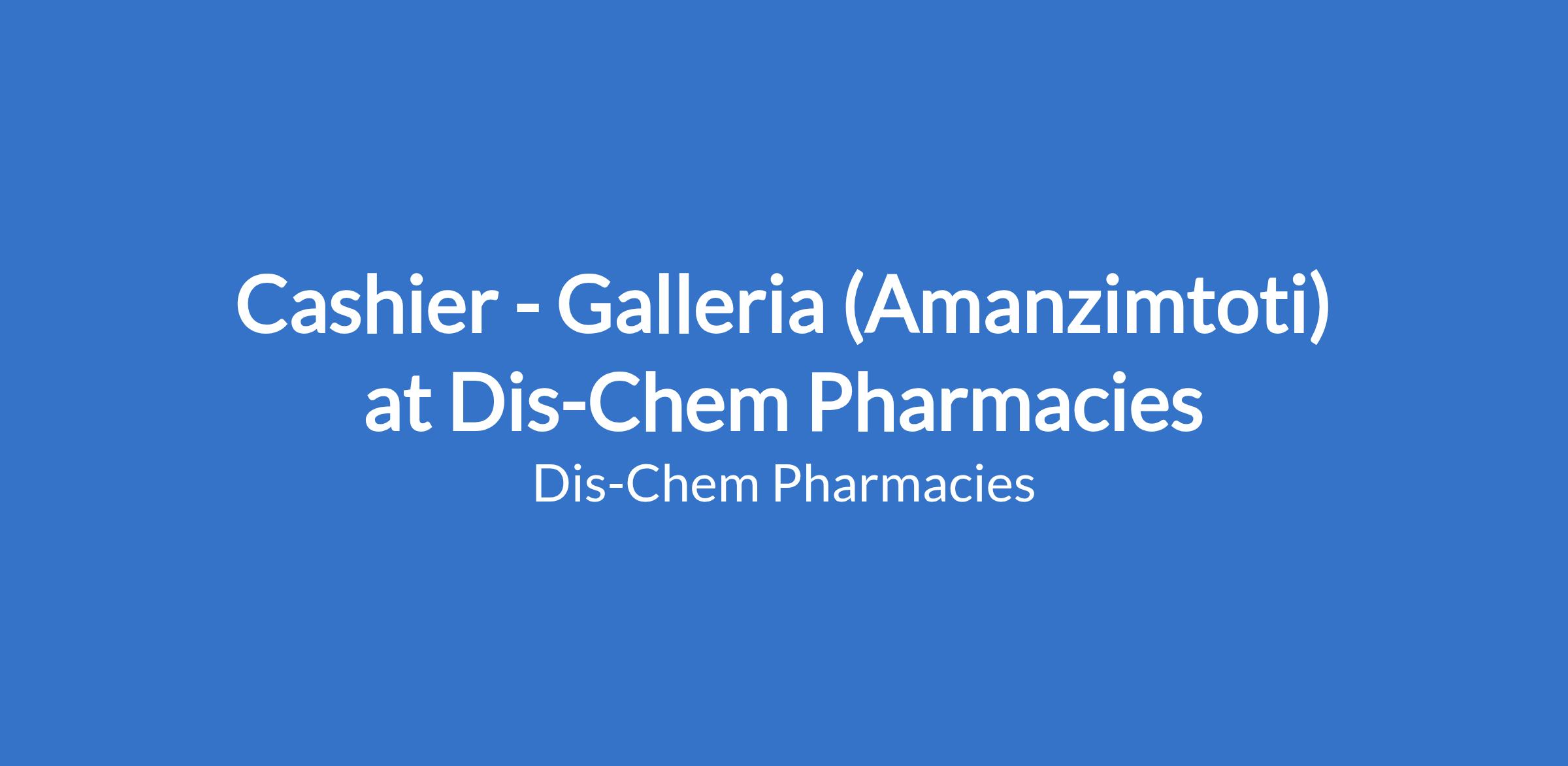 Dis-Chem Pharmacies requires an experienced Cashier for their Galleria (Amanzimtoti) store. To support customer service at point of sale while ensuring a world-class shopping experience.