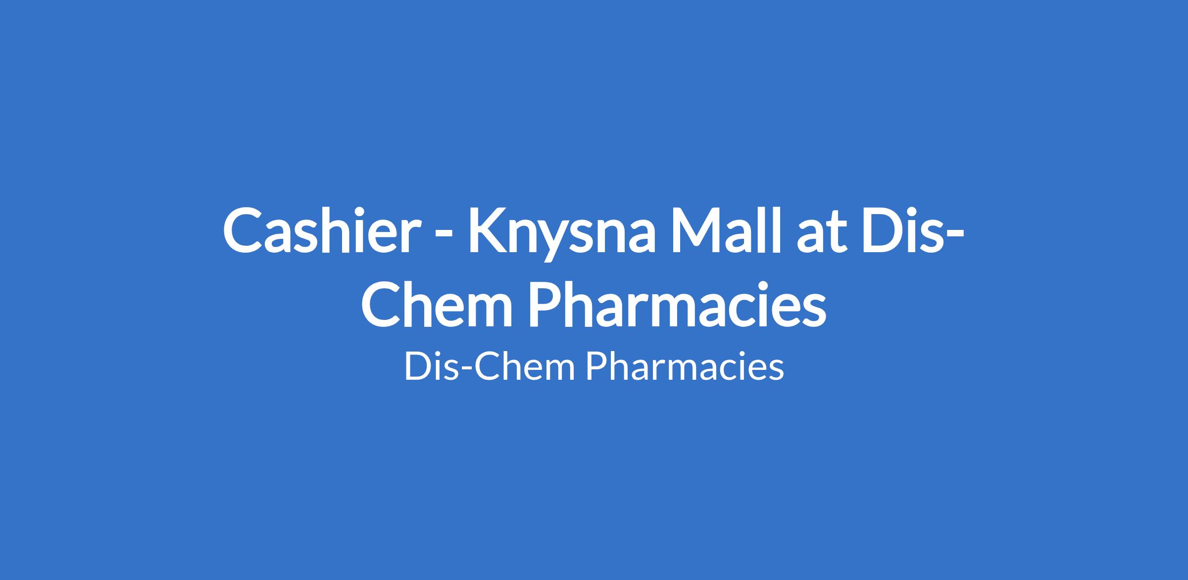 Dis-Chem Pharmacies requires experienced Cashier for their Knysna Mall store. Support customer service at point of sale while ensuring a world-class shopping experience.
