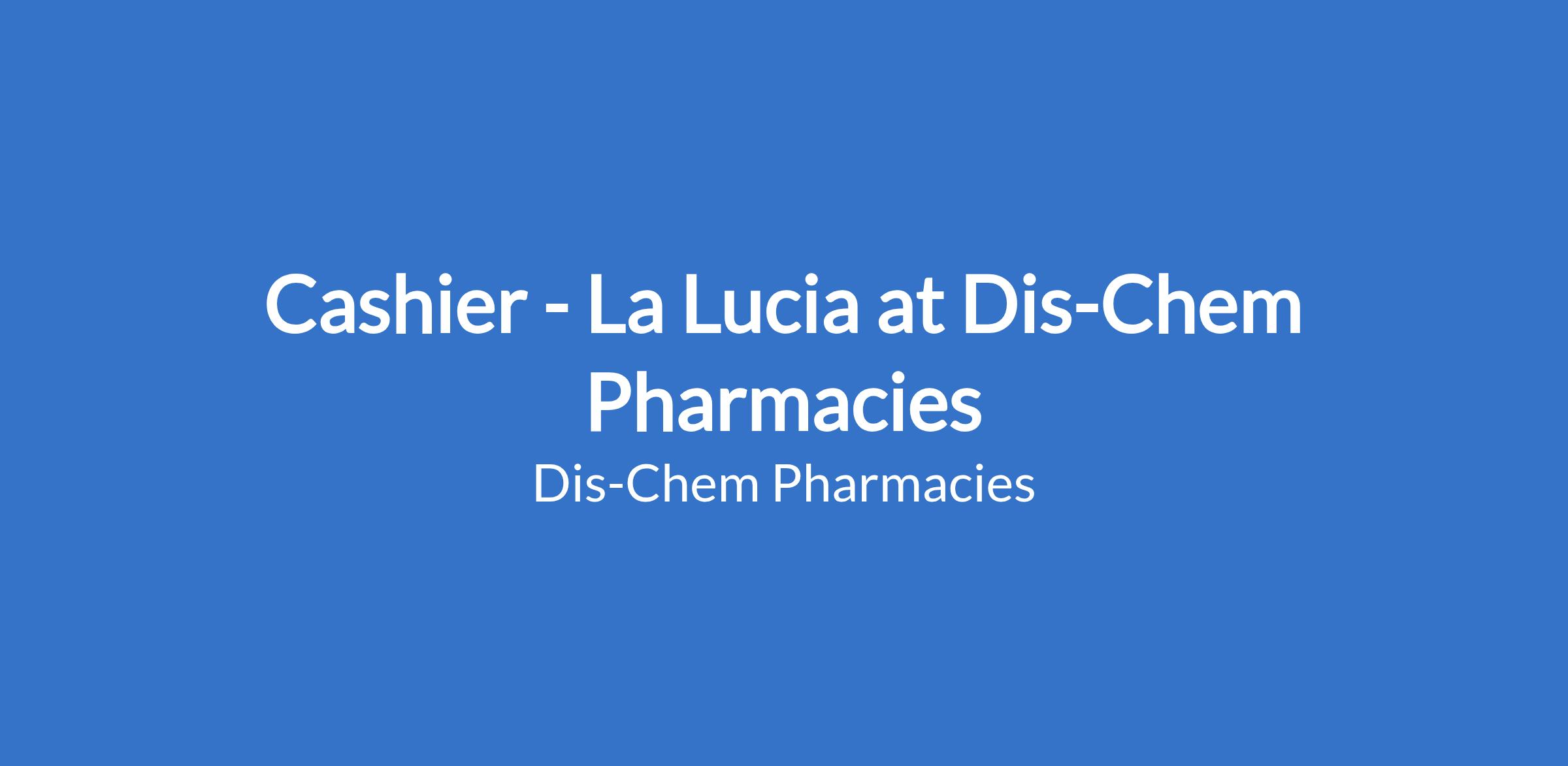 Dis-Chem Pharmacies requires an experienced Cashier for their La Lucia store.To support customer service at point of sale while ensuring a world-class shopping experience.