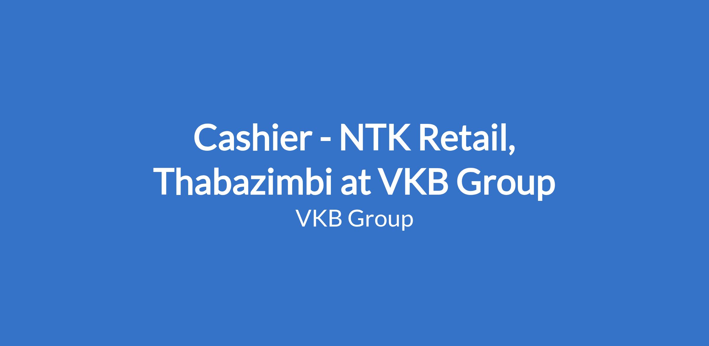 Cashier - NTK Retail, Thabazimbi at VKB Group