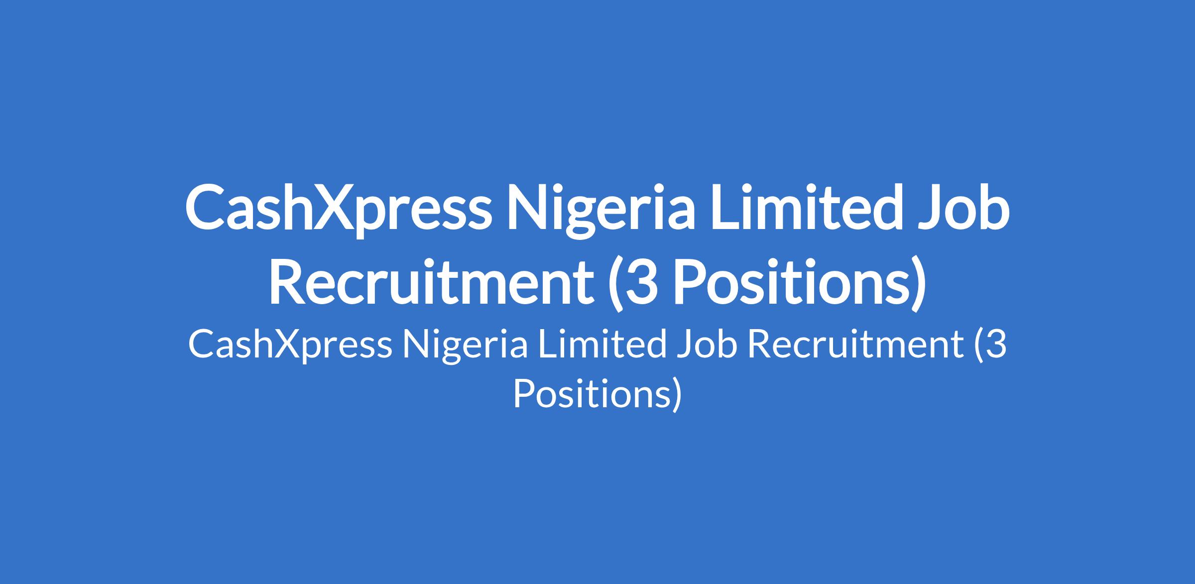 CashXpress Nigeria Limited is recruiting suitably qualified candidates to fill the following positions in Lagos State: Chief Risk Officer / Risk Manager, Chief Marketing Officer / Digital Marketing Manager, and Managing Director (MD) - Digital Money Lendi