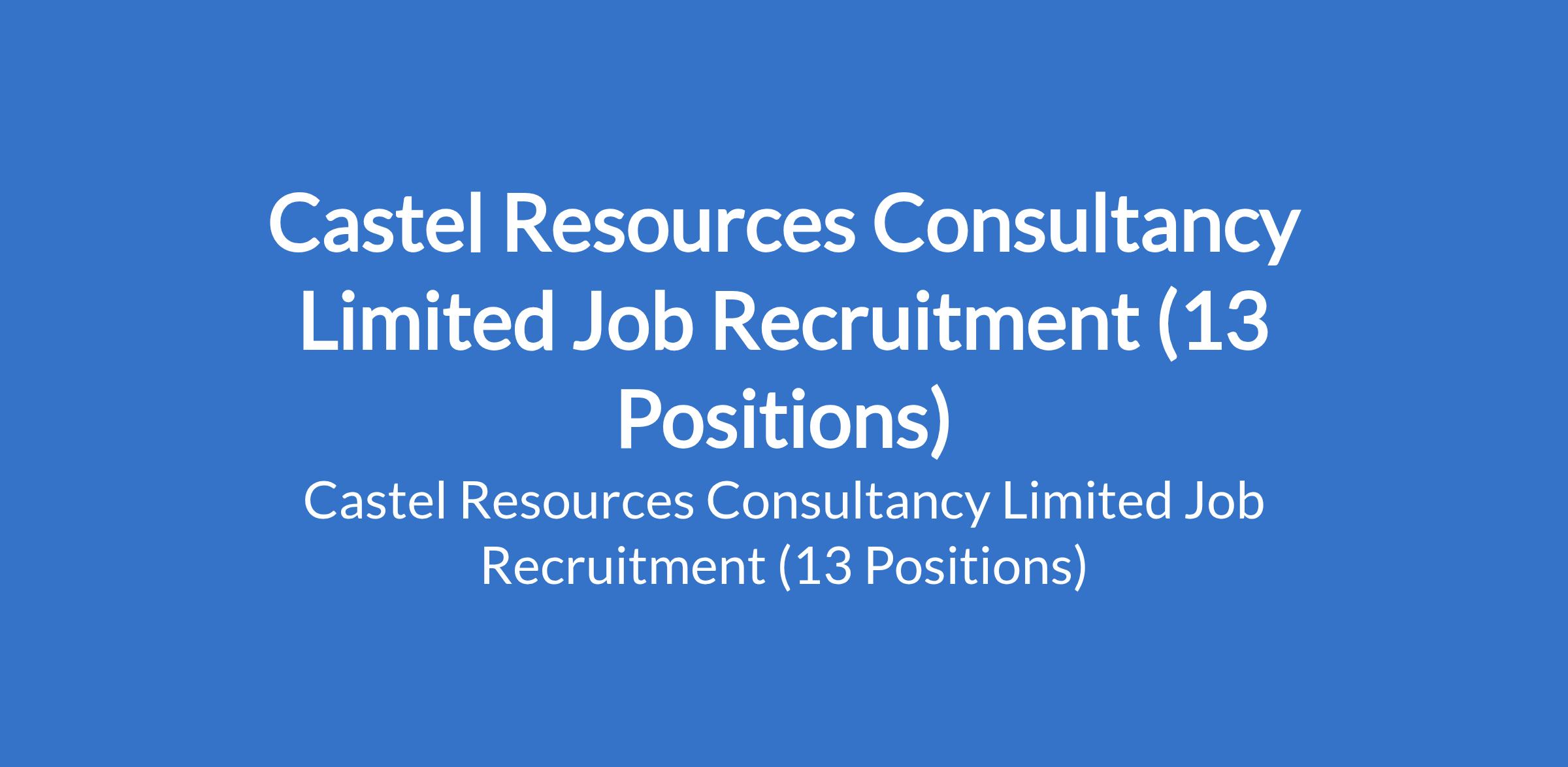 Castel Resources Consultancy Limited is currently recruiting suitably qualified candidates to fill the following positions in Abia & Rivers State: Account / Inventory / Compliance Officer (Oil & Gas), Camp Boss / Facility Manager, National Chef, Kitchen Assistant, Continental Chef, Housekeeping Supervisor / HSE, Fuel Pump Attendant, Warehouse Officer, Nutritionist / Quality Control Officer with Offshore Experience, Medical Sales Representative, Purchaser, Housekeeper Supervisor, and Camp Boss / Facility Manager.