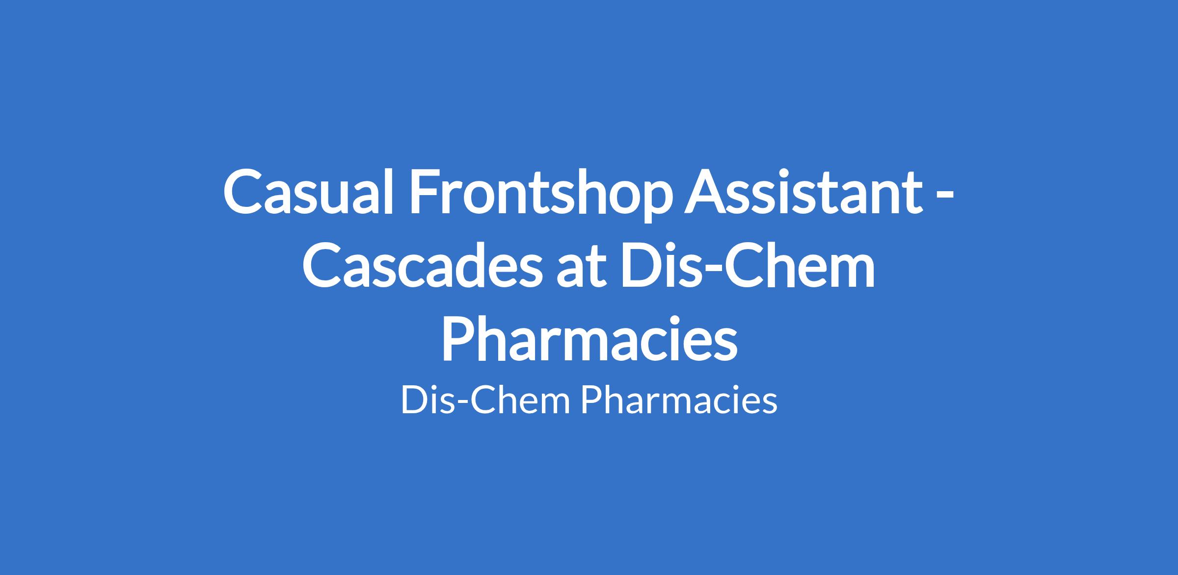 Dis-Chem Cascades requires a Casual Frontshop Assistant, to uphold the merchandising standards whilst supporting the customer service at point of sales in accordance with Dis-Chem policies and procedures.