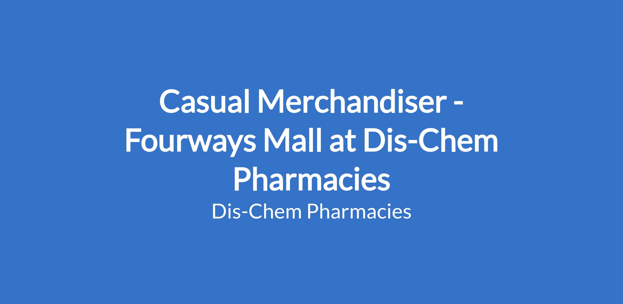 Dis-Chem Pharmacies is continuously looking for Casual Merchandisers to build a talent pool for their Fourways Mall stores.