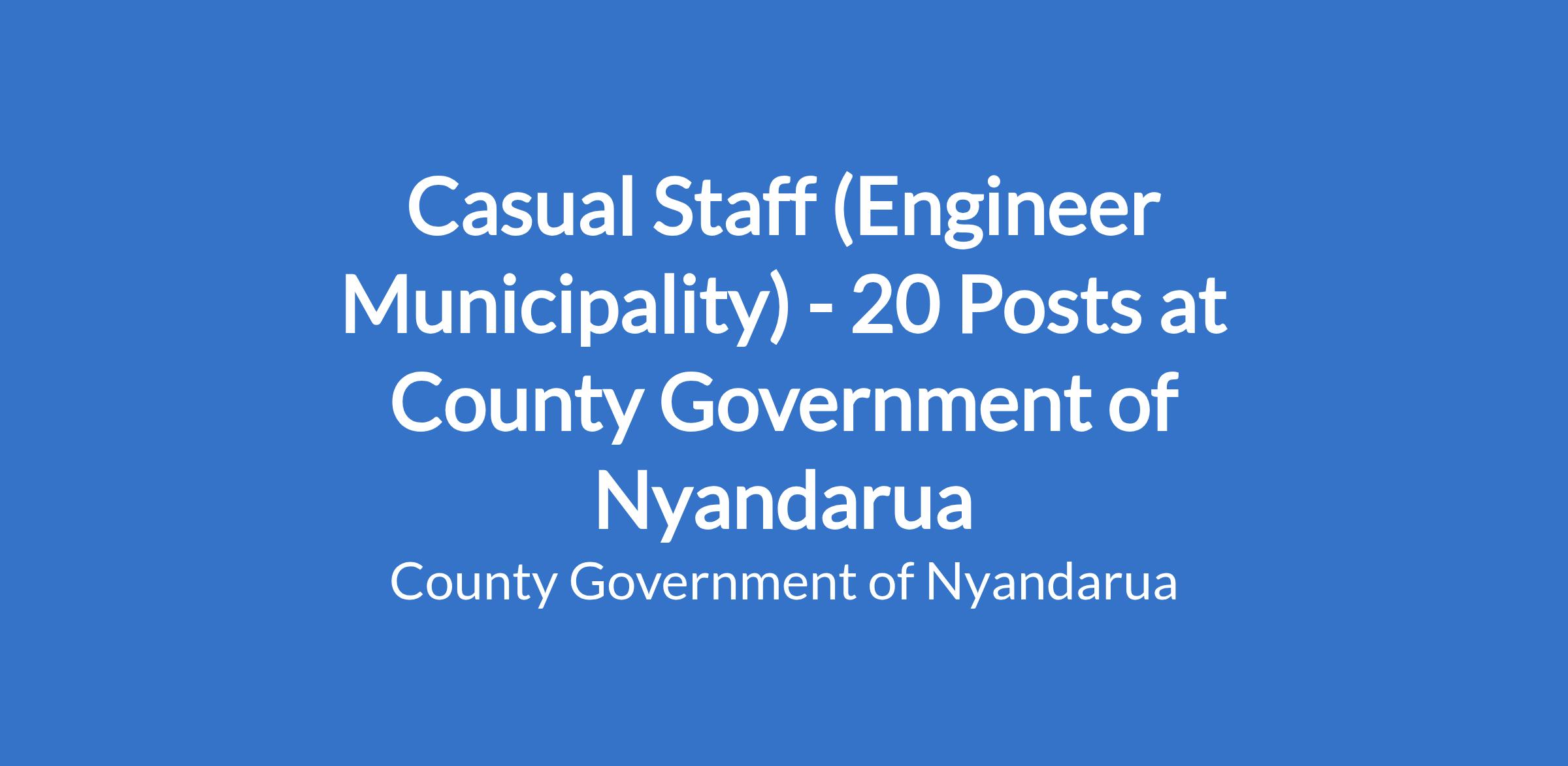 Casual Staff (Engineer Municipality) - 20 Posts at County Government of Nyandarua