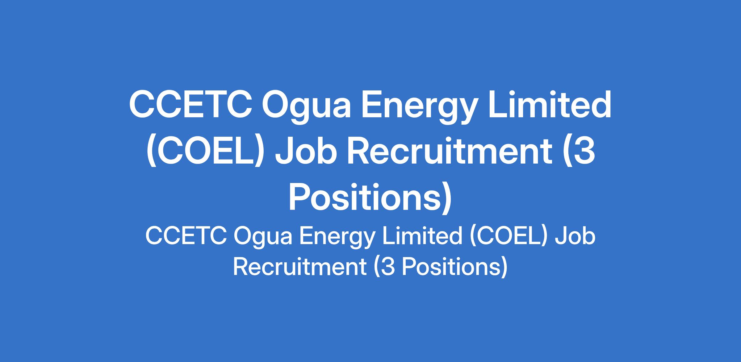 CCETC Ogua Energy Limited (COEL) Job Recruitment (3 Positions)