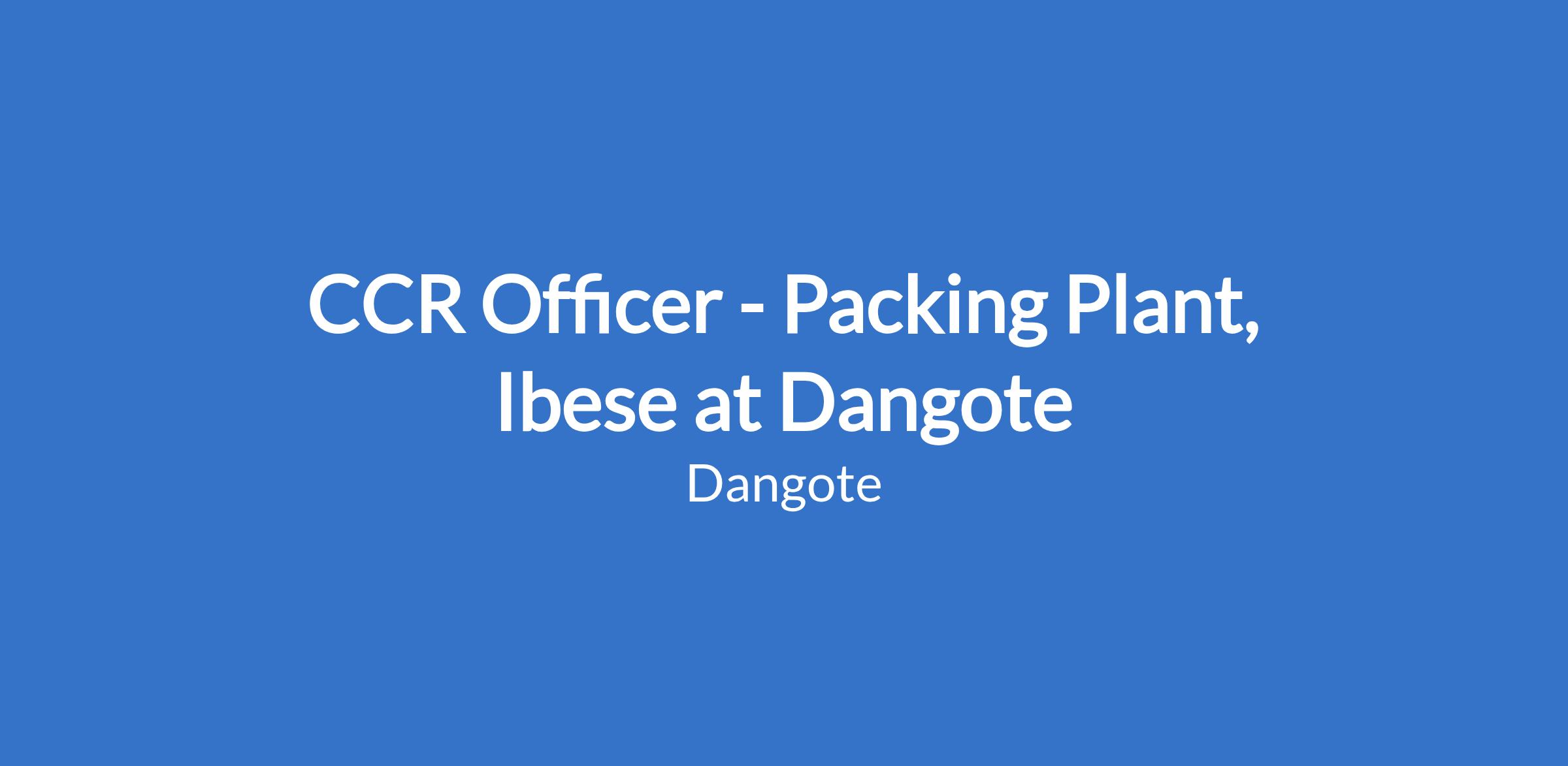 CCR Officer - Packing Plant, Ibese at Dangote