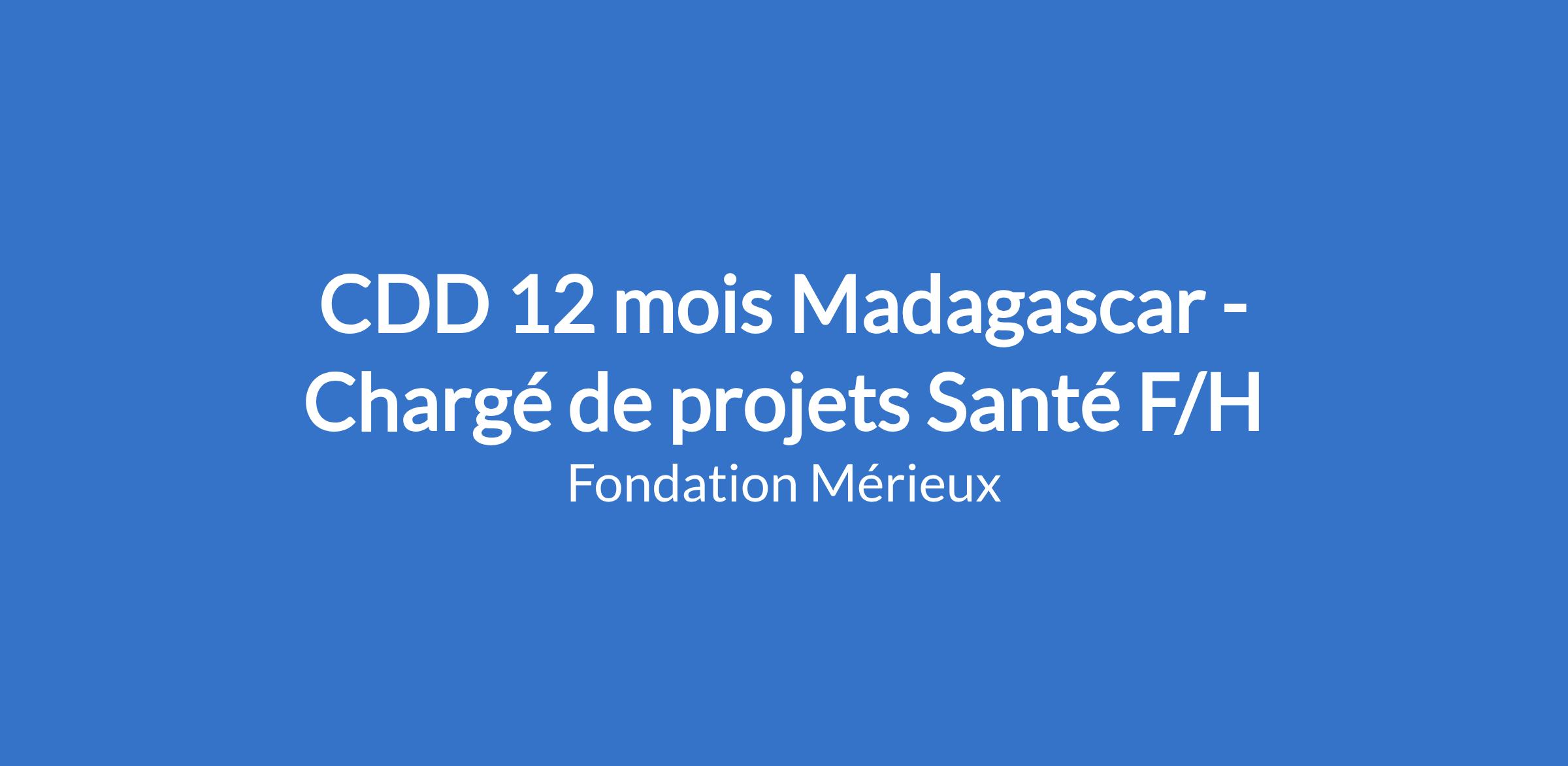 Pour aider notre équipe à contribuer à la santé publique dans les pays à ressources limitées, envoyez-nous votre candidature (CV + LM + dernier diplôme+ CIN) à l’adresse suivante : contact.madagascar@fondation-merieux.org