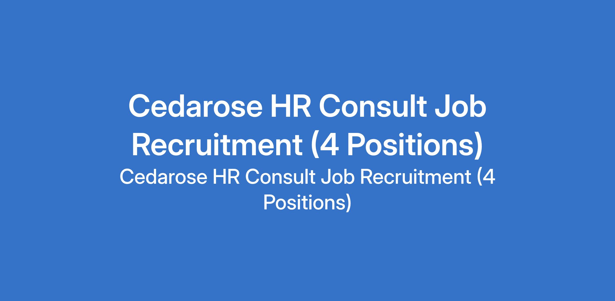 Cedarose HR Consult Job Recruitment (4 Positions)