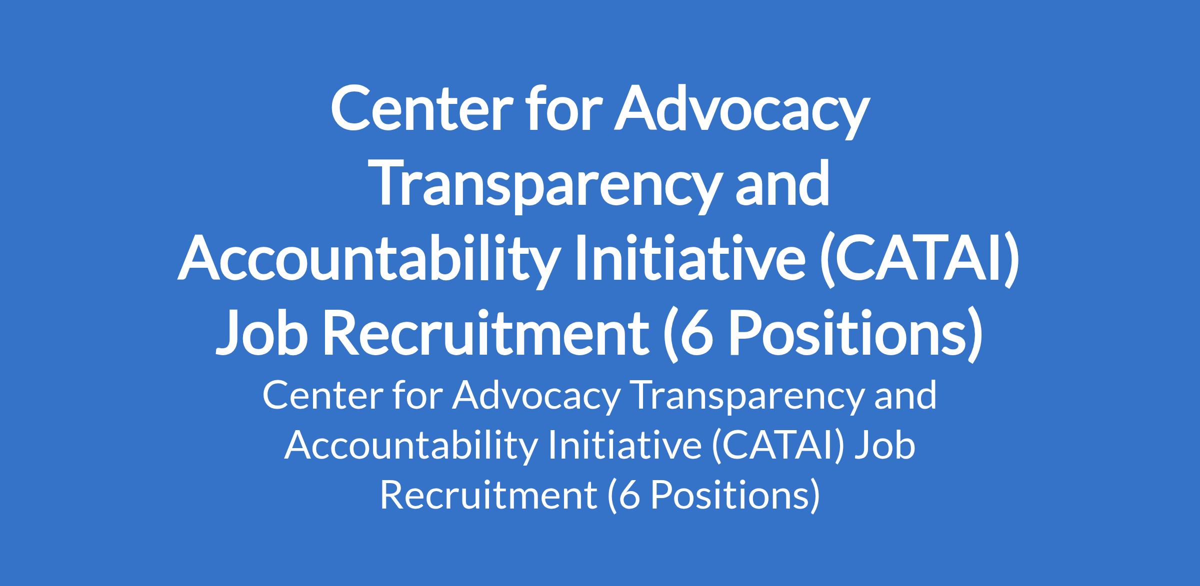Center for Advocacy Transparency and Accountability Initiative (CATAI) is recruiting suitable candidates to fill the following positions in Borno State: Community Mobilisation and Engagement Assistant, GBV Caseworker, Legal Officer, CP Caseworker, GBV Officer, and MHPSS Assistant.