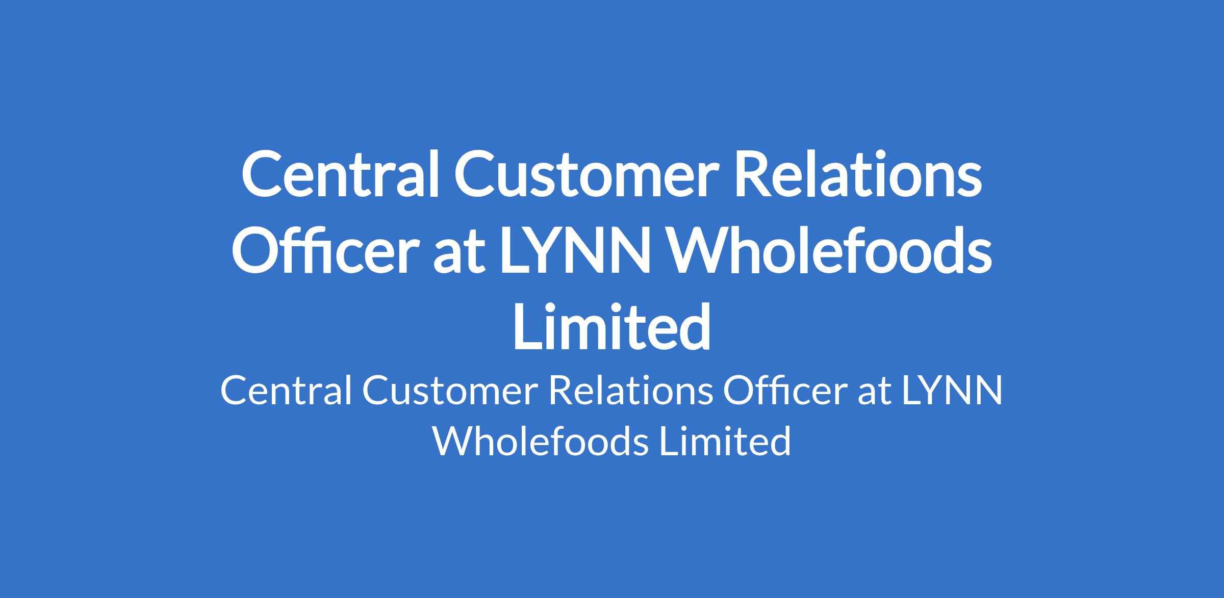 LYNN Wholefoods Limited is recruiting to fill the position of: Central Customer Relations Officer. The position is located in Abuja (FCT). Interested candidates should possess a Bachelor's Degree in Business Administration, Marketing, Communications, Hospitality, or related fields with 3 - 5 years in customer relations, customer service management, or centralized support roles (experience in retail, F&B, caf chain, or multi-outlet environment strongly preferred).