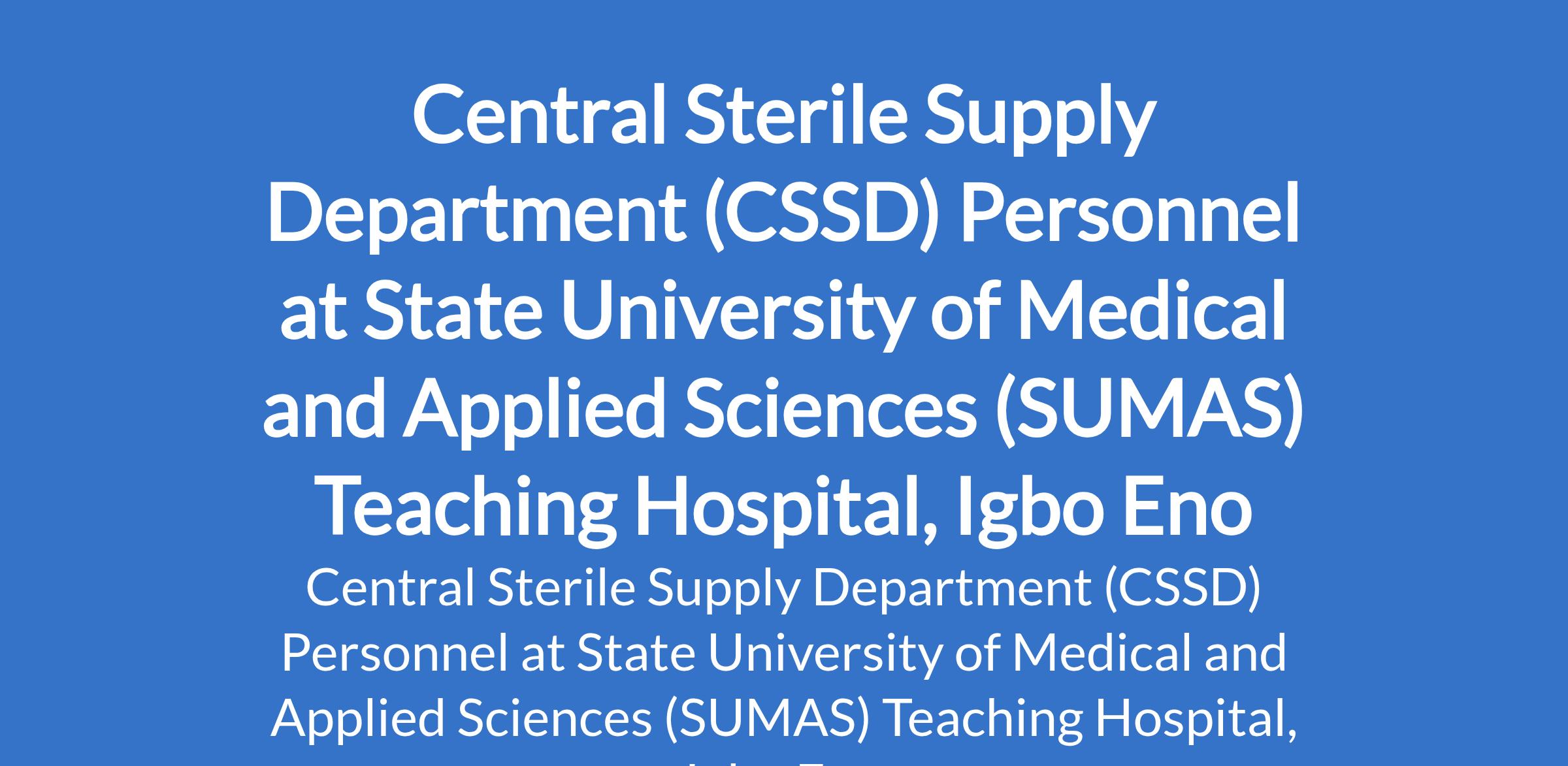 State University of Medical and Applied Sciences (SUMAS) Teaching Hospital, Igbo Eno invites applications from suitable candidates for the position of: Central Sterile Supply Department (CSSD) Personnel. The position is located in Enugu State. Interested candidates should possess relevant qualifications with a 3-year training programme at the School of Health Technology.