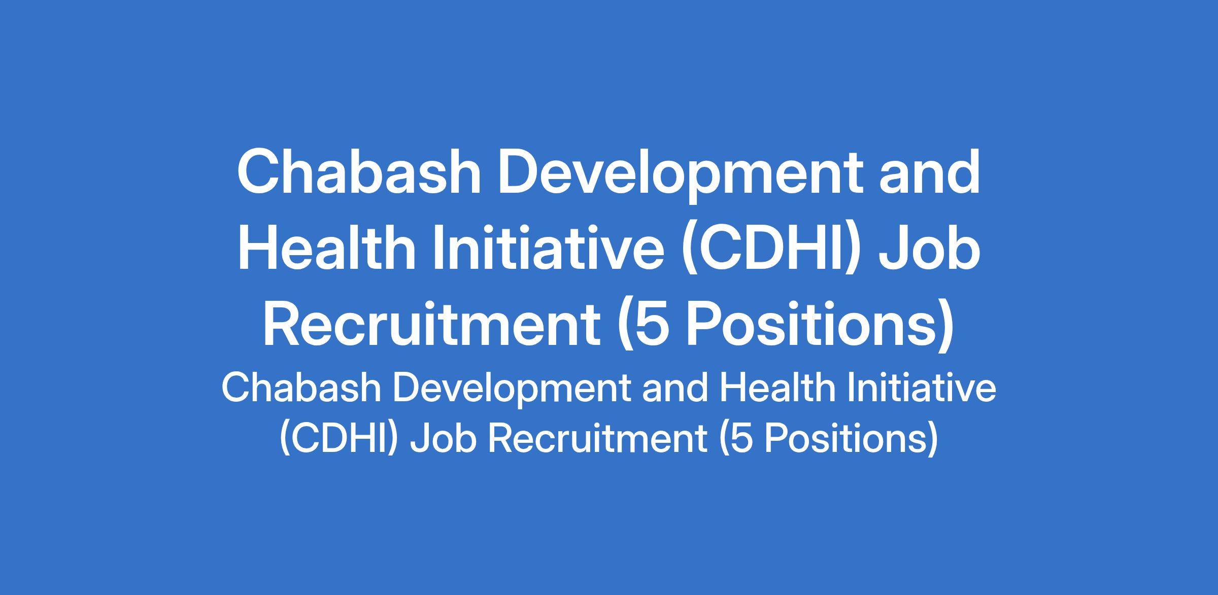 Chabash Development and Health Initiative (CDHI) is recruiting suitably qualified candidates to fill the following positions in Borno State: Food Security and Livelihood Manager, Food Security and Livelihood Assistant, Livelihood Officer, Disability Inclusion Assistant, and Cash and Voucher Officer.