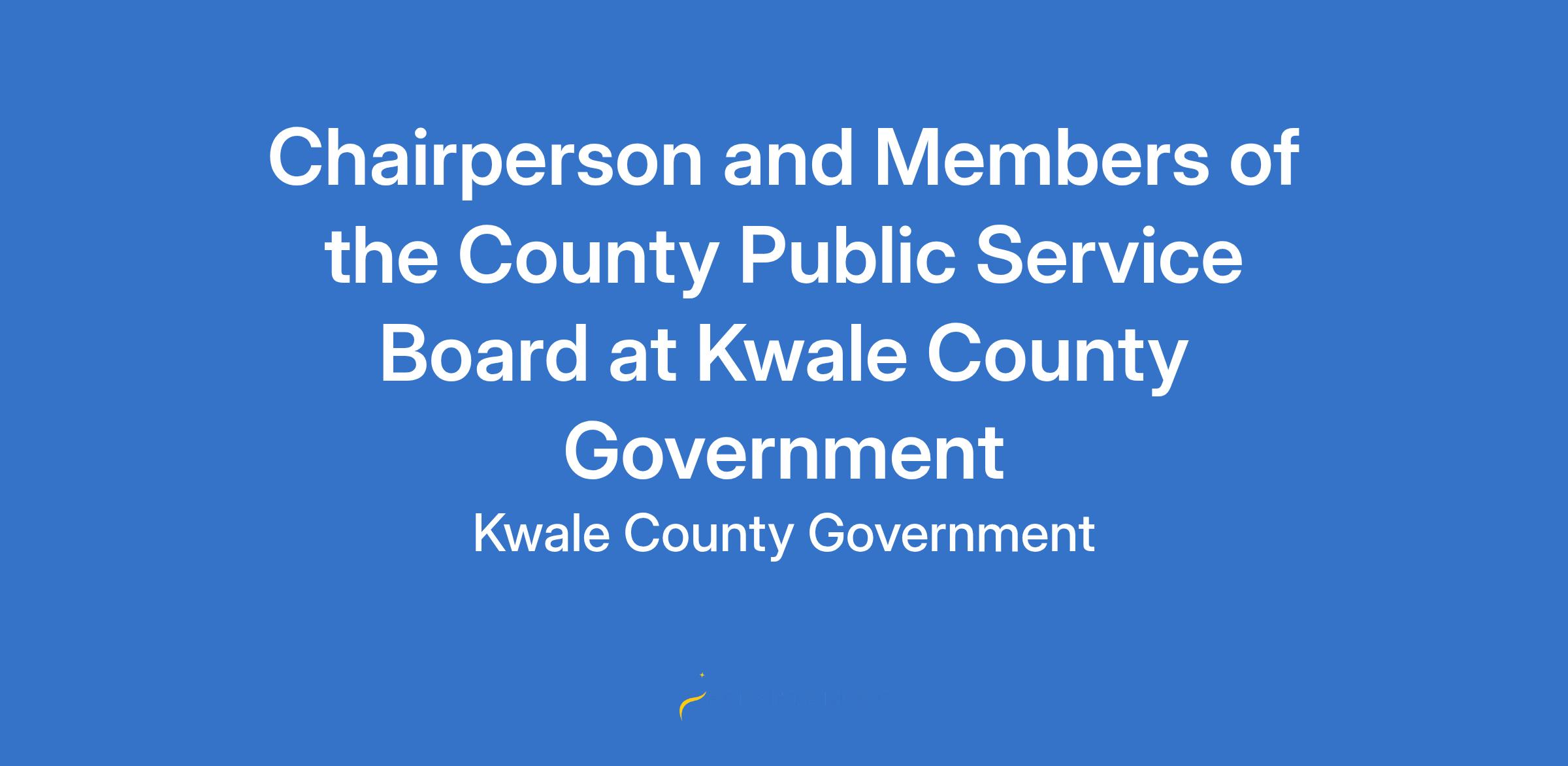 PREAMBLE Pursuant to Article 235 of the Constitution of Kenya, 2010 as read with sections 57, 58 and 58A(5) of the County Governments Act, 2020 (2012), the Selection Panel for the appointment of Chairperson and Members of the Kwale County Public Service Board hereby invites applications from competent and qualified persons to fill the positions of;- 1. Chairperson of the Kwale County Public Service Board 2. Members of the Kwale County Public Service Board TERMS AND CONDITIONS OF SERVICE Terms of Service: Six (6) years non- renewable contract Salary: As set out by the Salaries and Remuneration Commission (SRC)