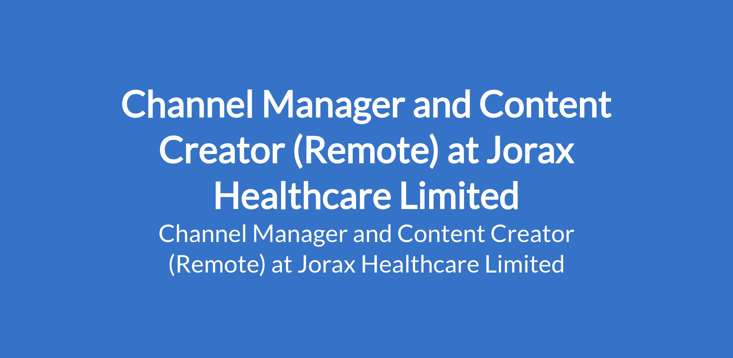 Channel Manager and Content Creator (Remote) at Jorax Healthcare Limited