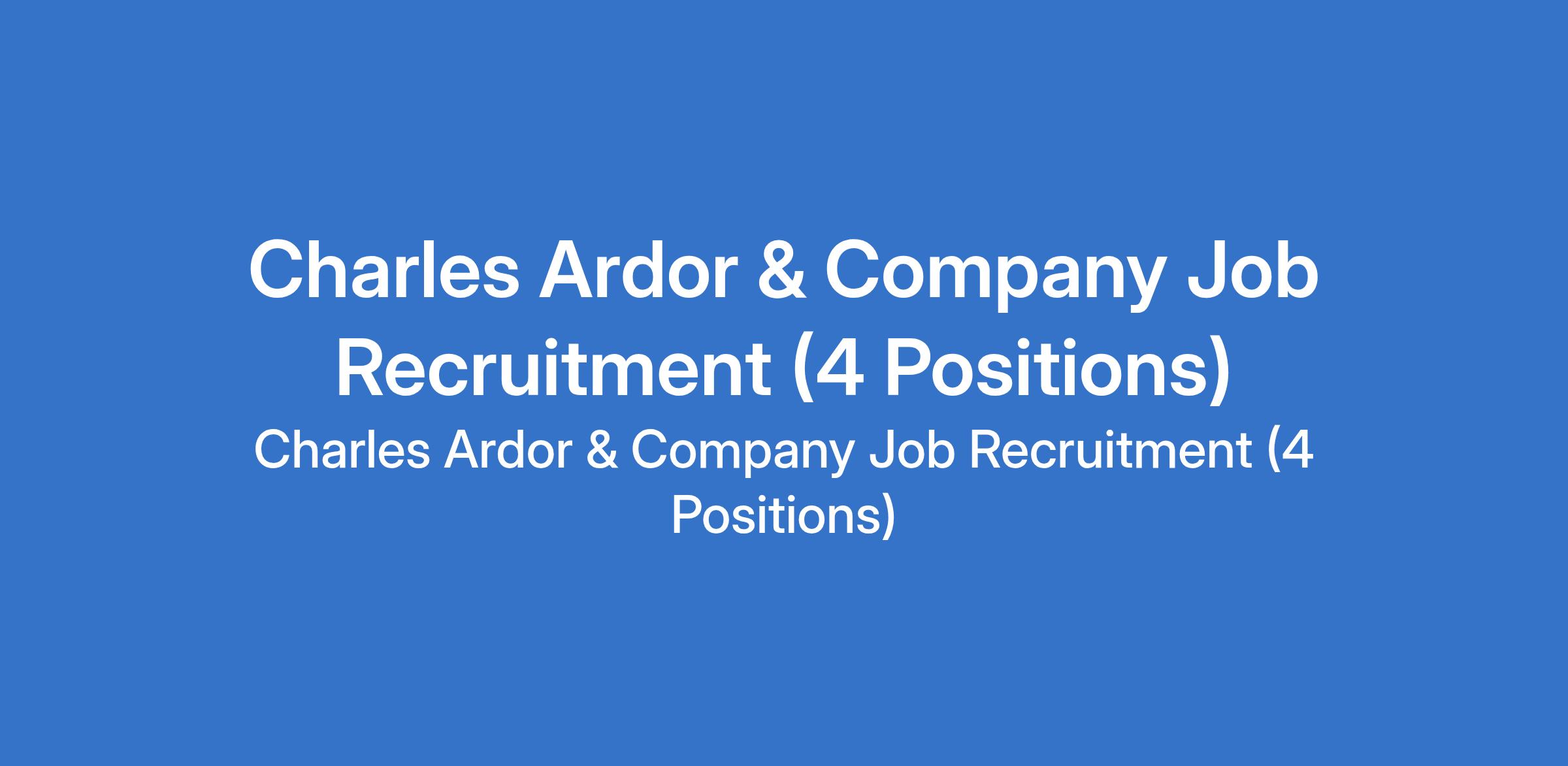 Charles Ardor & Company Job Recruitment (4 Positions)