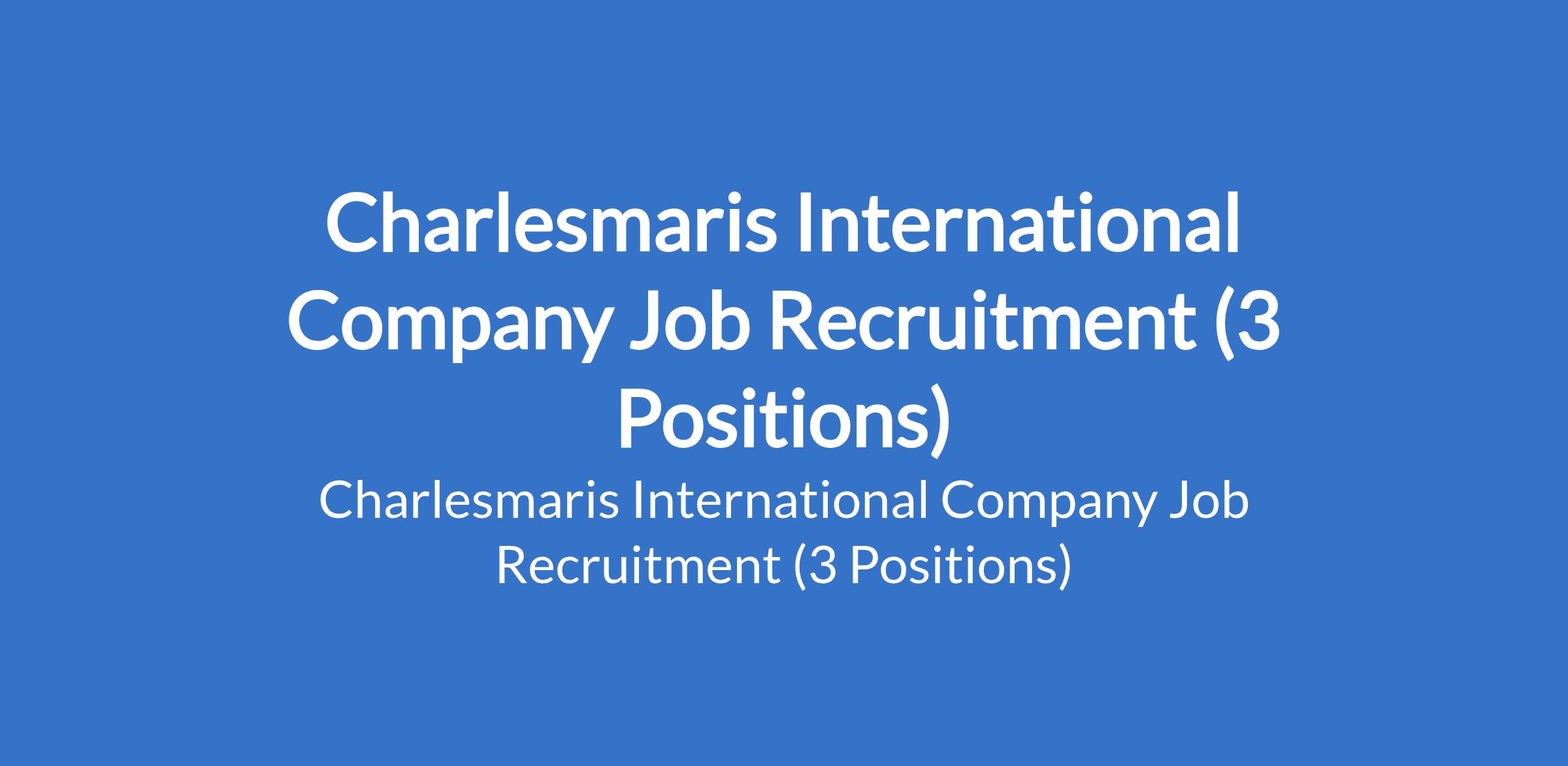 Charlesmaris International Company Job Recruitment (3 Positions)