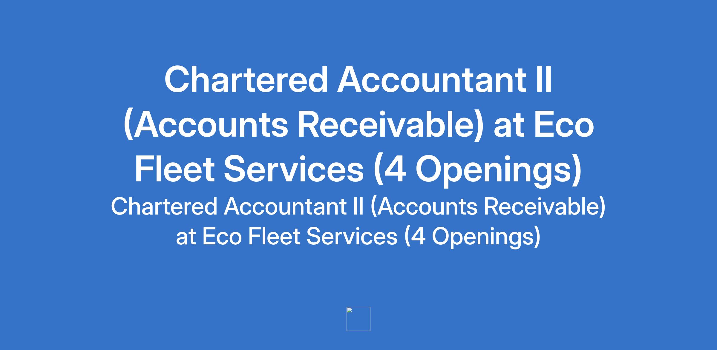 Eco Fleet Services is recruiting to fill the position of: Chartered Accountant II (Accounts Receivable). The position is located in Abeokuta - Ogun, Ibadan - Oyo, Osogbo - Osun , & Ikeja - LagosStates. Salary: N350,000 - N500,000 per month. Interested candidates should possess a B.Sc. Degree / HND in Accounting, Finance, Economics, or a related discipline with 510 years of progressive accounting experience, preferably in logistics, oil and gas, or manufacturing industries.