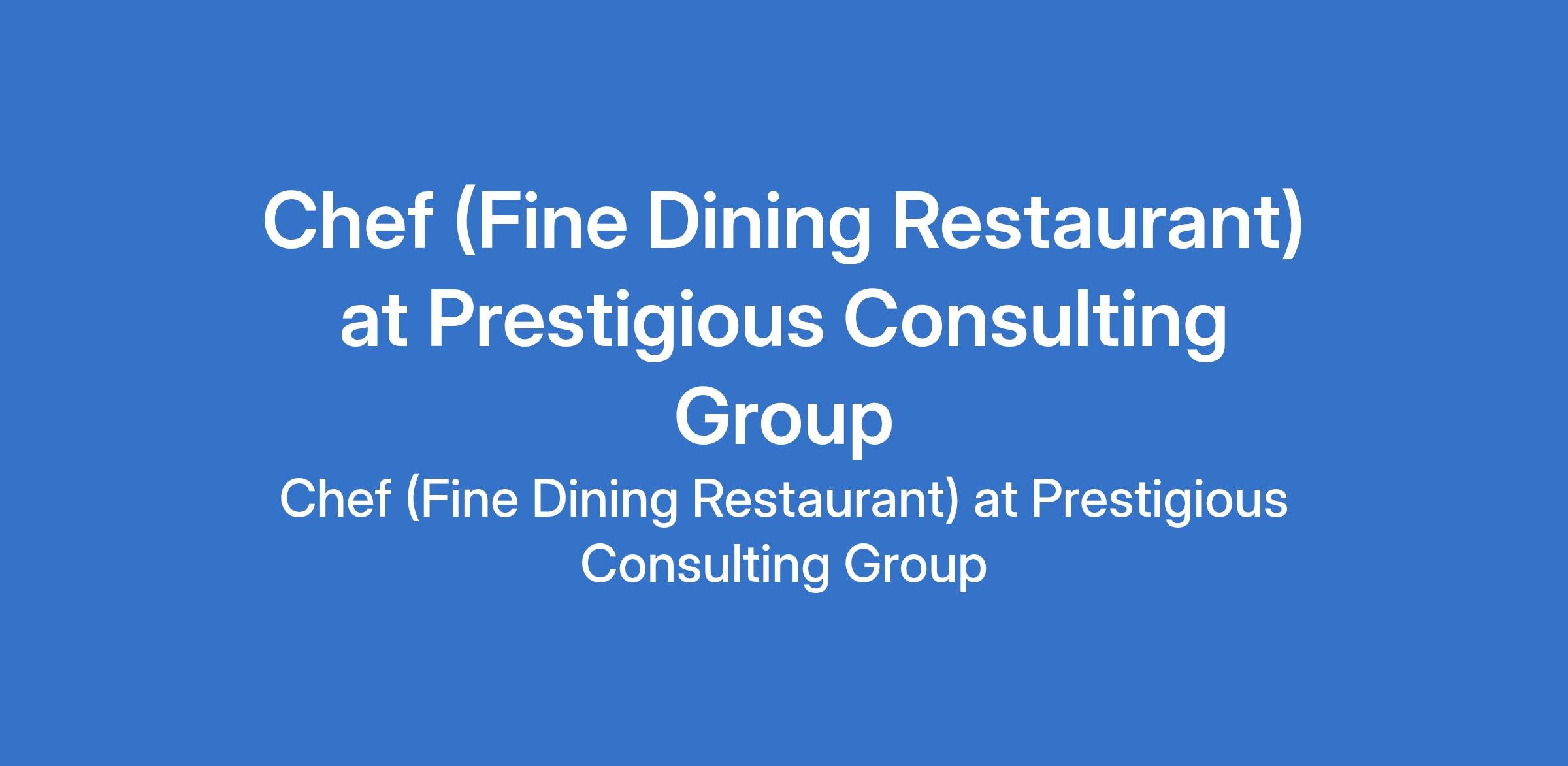 Prestigious Consulting Group is recruiting to fill the position of: Chef (Fine Dining Restaurant). The position is located in Ajah Lagos, State. Salary: N100,000 - N150,000 monthly. Interested candidates should possess a Bachelor's Degree with 46 years experience as a Chef in a fine dining restaurant.