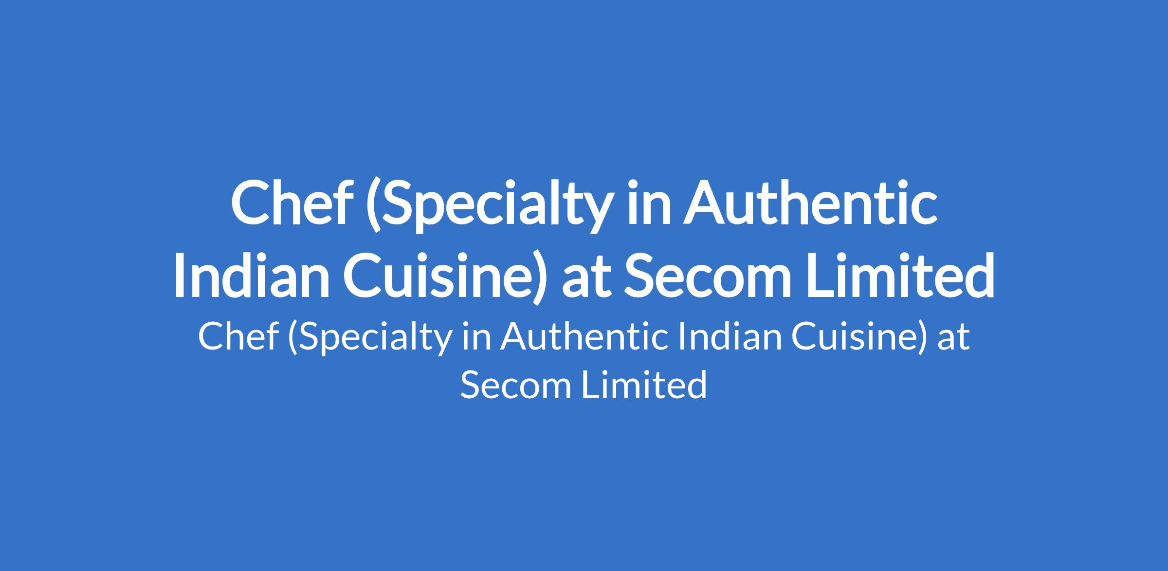 Secom Limited is recruiting to fill the position of: Chef (Specialty in Authentic Indian Cuisine). The position is located in Lagos State. Interested candidates should possess relevant qualifications with 3 5 years proven experience as a Chef specializing in Indian cuisine.