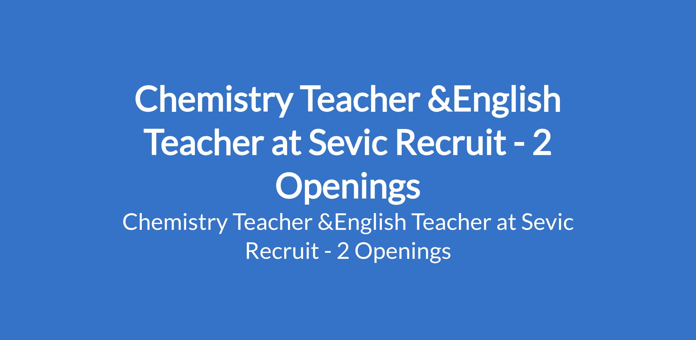 Chemistry Teacher &English Teacher at Sevic Recruit - 2 Openings