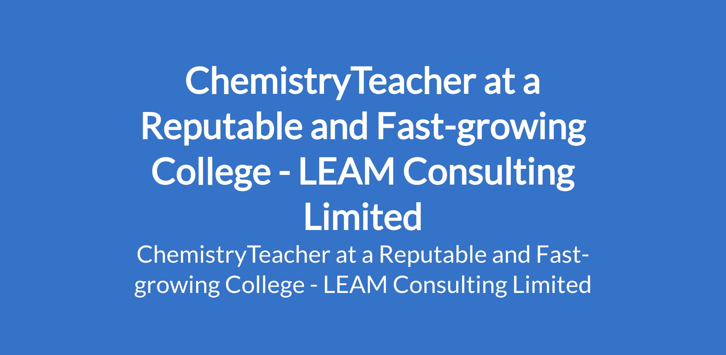 LEAM Consulting Limited - Our client, a reputable and fast-growing College is recruiting to fill the position of: ChemistryTeacher. The position is located in Akala Express way, Ibadan - Oyo State. Salary: N55,000 N60,000 per month. Interested candidates should possess relevant qualifications and must be dedicated, disciplined and committed to academic excellence and character development.