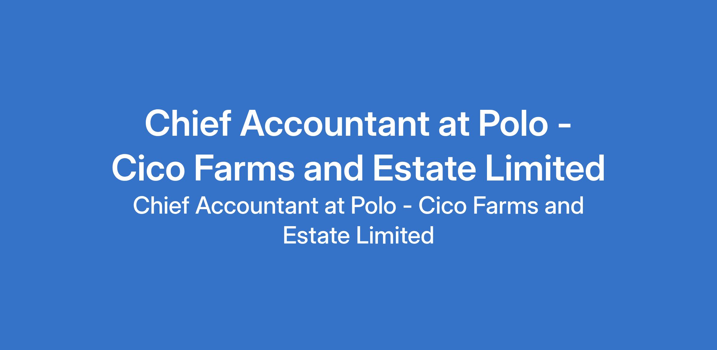 Polo - Cico Farms and Estate Limited is recruiting to fill the position of: Chief Accountant. The position is located in Omoku, Rivers State. Interested candidates should possess an HND / B.Sc in Accountancy / Finance and must be a Chattered Accountant with at least 3 years of experience as head of Accounts/Finance.