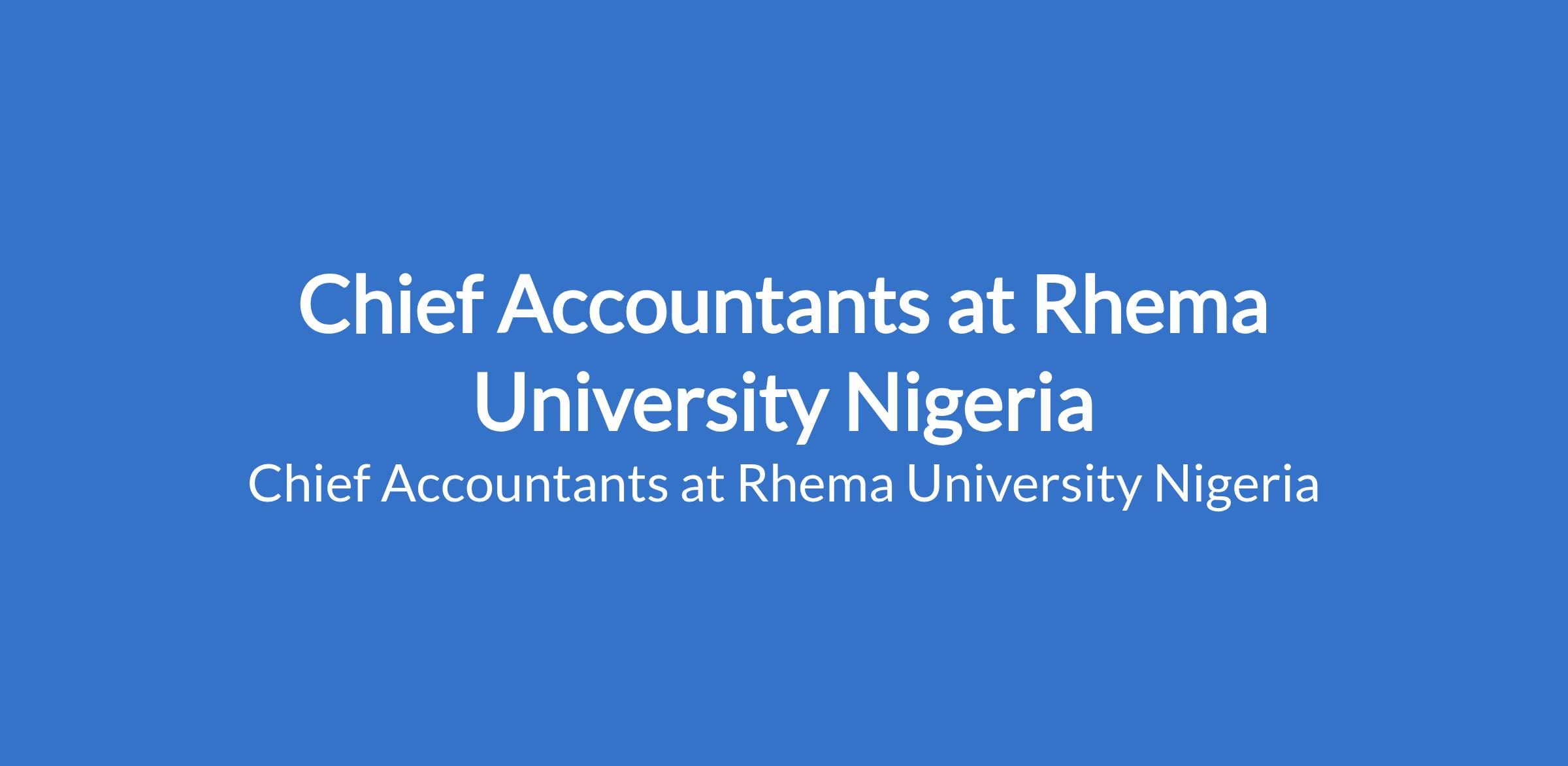 Rhema University Nigeria invites applications from suitably qualified candidates for the position of: Chief Accountant. The position is located in Aba, Abia State. Interested candidates should possess a good First or Second Degree in Accounting, Finance, Economics, or Business Administration and must as well be a qualified chartered accountant and a member of any of the following professional accounting bodies: ICAN, ANAN, ACA.