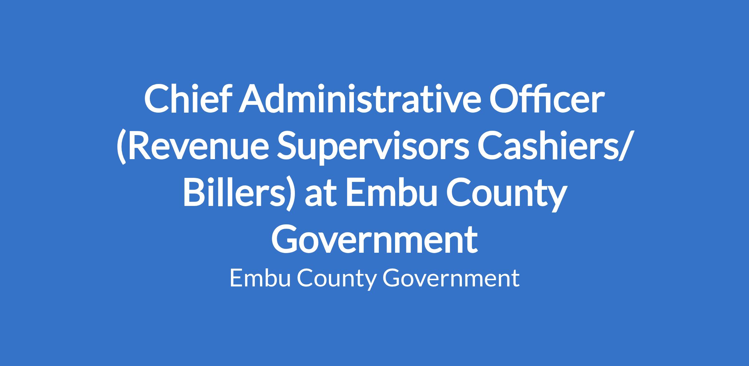 Chief Administrative Officer (Revenue Supervisors Cashiers/ Billers) at Embu County Government
