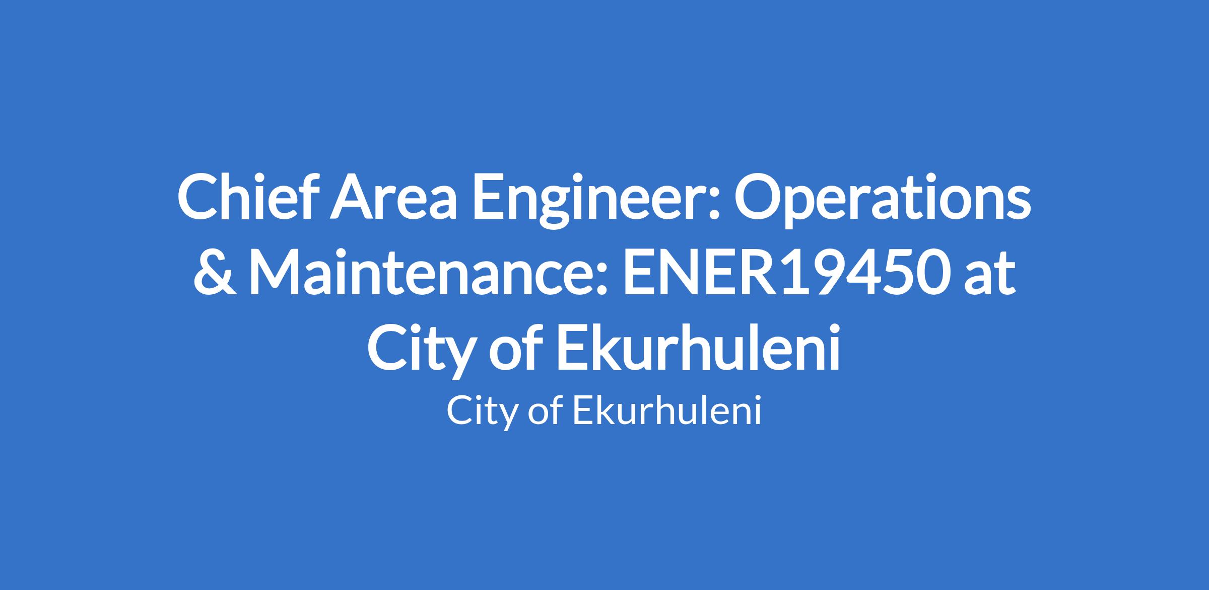 Chief Area Engineer: Operations & Maintenance: ENER19450 at City of Ekurhuleni