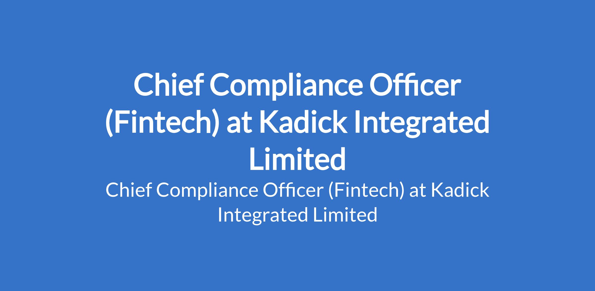 Kadick Integrated Limited is recruiting to fill the position of: Chief Compliance Officer (Fintech). The position is located in Sangotedo, Lagos State. Salary: N600,000 - N700,000 per month. Interested candidates should possess a Bachelors Degree in Law, Finance, Business, Risk Management, or a related field (advanced degree is an advantage) with a minimum of 5 years experience in compliance, risk, or legal roles, with 35 years in a senior leadership capacity within fintech or financial services.