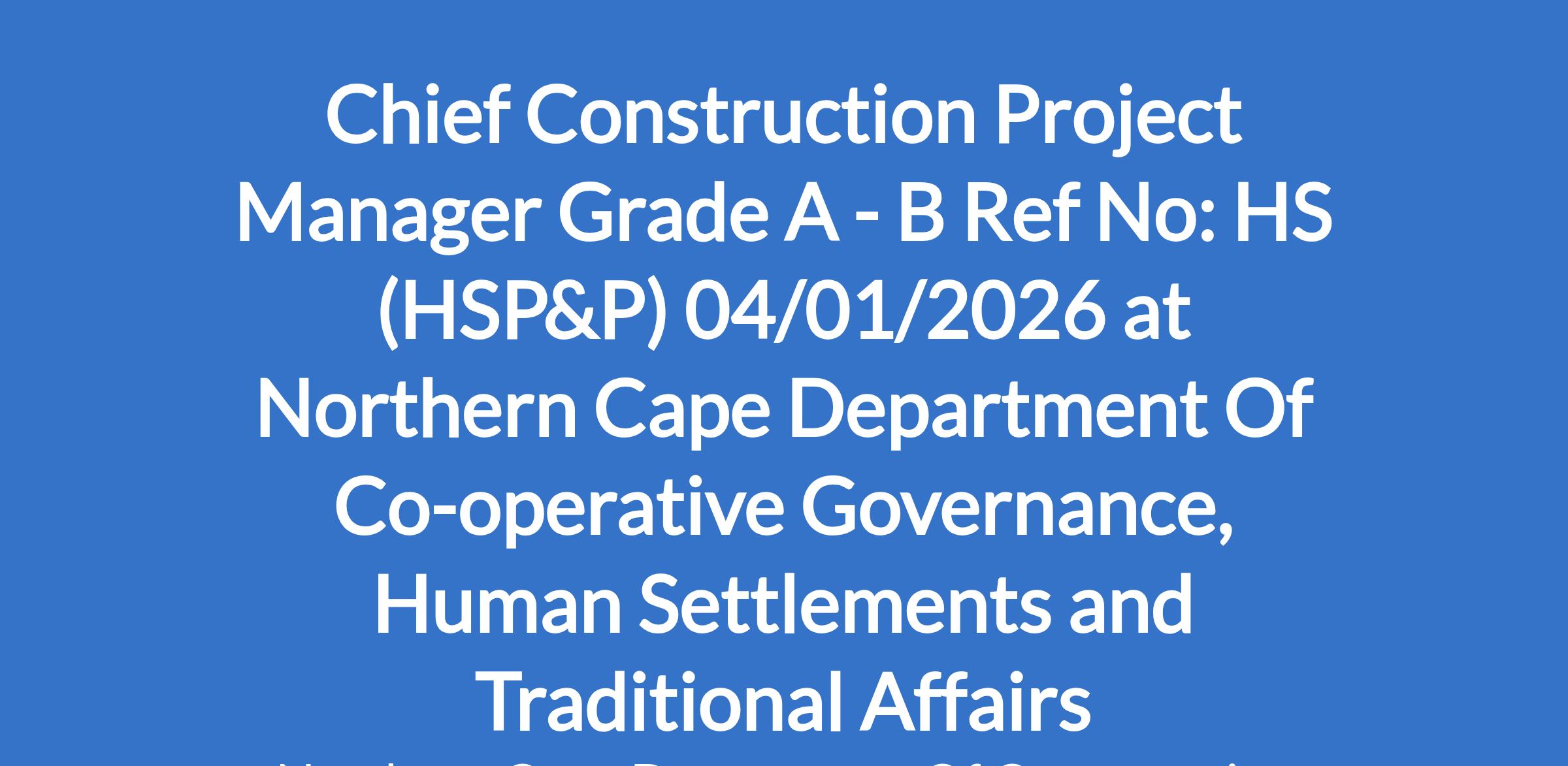 A relevant Bachelor's degree or equivalent qualification in a technical field/the Built Environment, with a minimum of 6 years post qualifications professional experience is required. Professional registration with the South African Council for Project and Construction Management Professions (SACPCMP) or Engineering Council of South Africa (ECSA) is compulsory.
