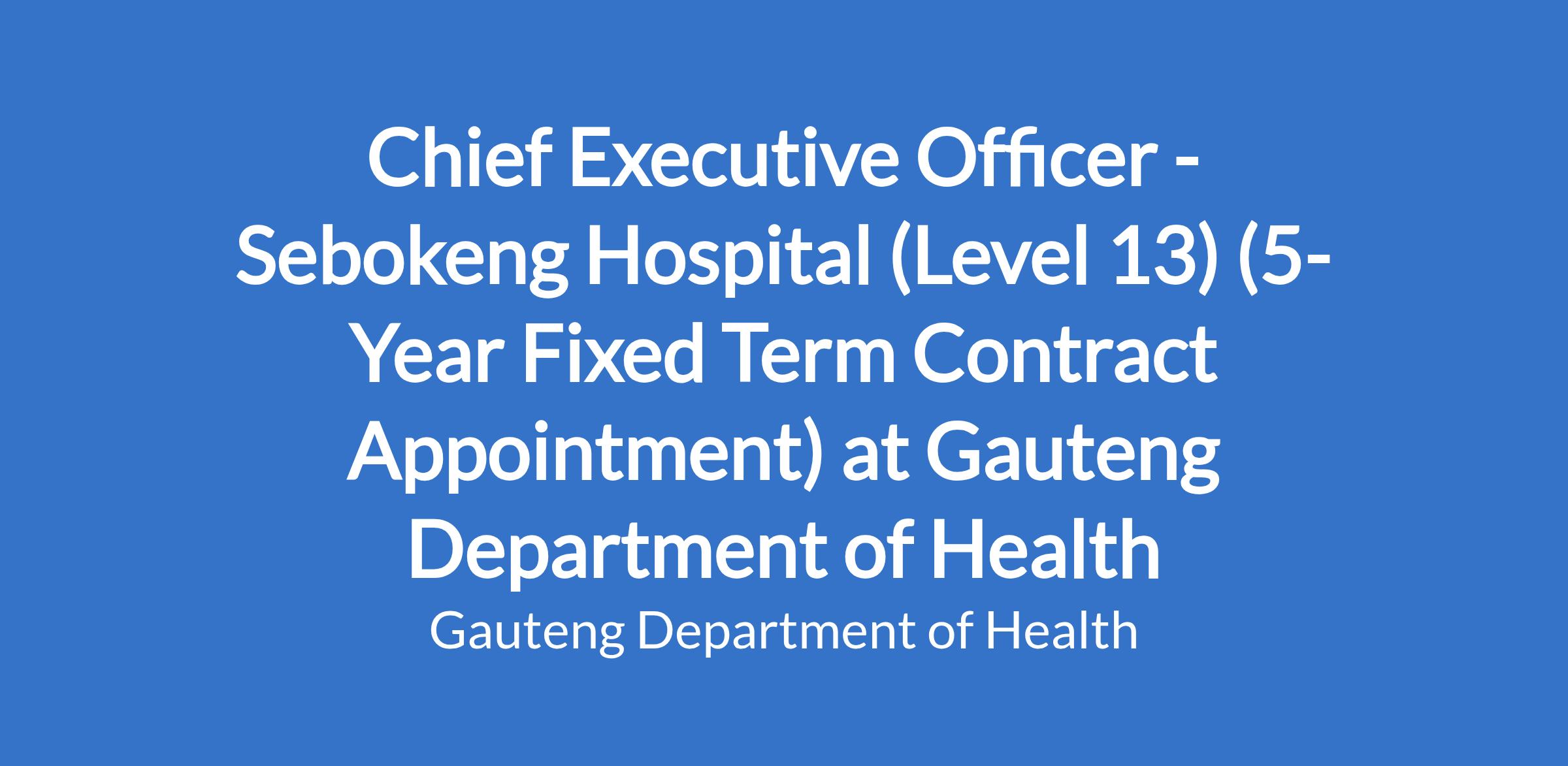 Chief Executive Officer - Sebokeng Hospital (Level 13) (5-Year Fixed Term Contract Appointment) at Gauteng Department of Health
