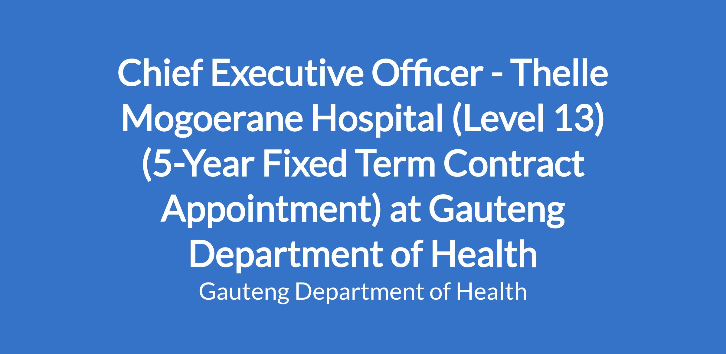 Chief Executive Officer - Thelle Mogoerane Hospital (Level 13) (5-Year Fixed Term Contract Appointment) at Gauteng Department of Health