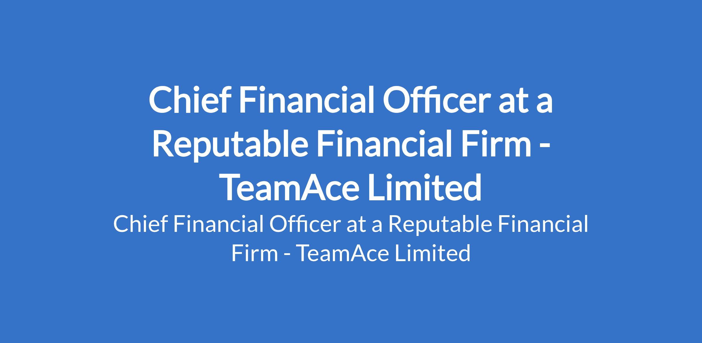 TeamAce Limited - Our client, a reputable organization in the Financial Services sector is recruiting to fill the position of: Chief Financial Officer. The position is located in Victoria Island, Lagos State. Interested candidates should possess a Bachelors degree in Accounting, Finance, or related field with 10+ years experience in finance leadership roles within consulting, financial advisory, or fintech.