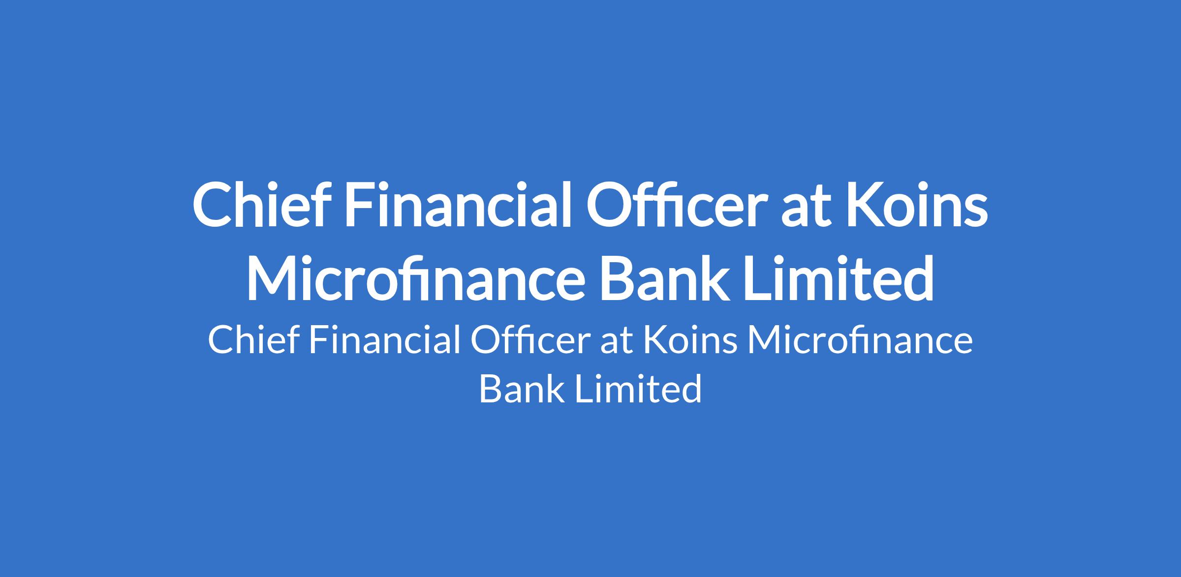 Koins Microfinance Bank Limited is recruiting to fill the position of: Chief Financial Officer. The position is located in Lagos State. Interested candidates should possess a Bachelor's degree in Accounting, Finance, Economics, Banking & Finance, or related field from a recognized university with 12-15 years of progressive financial management experience.