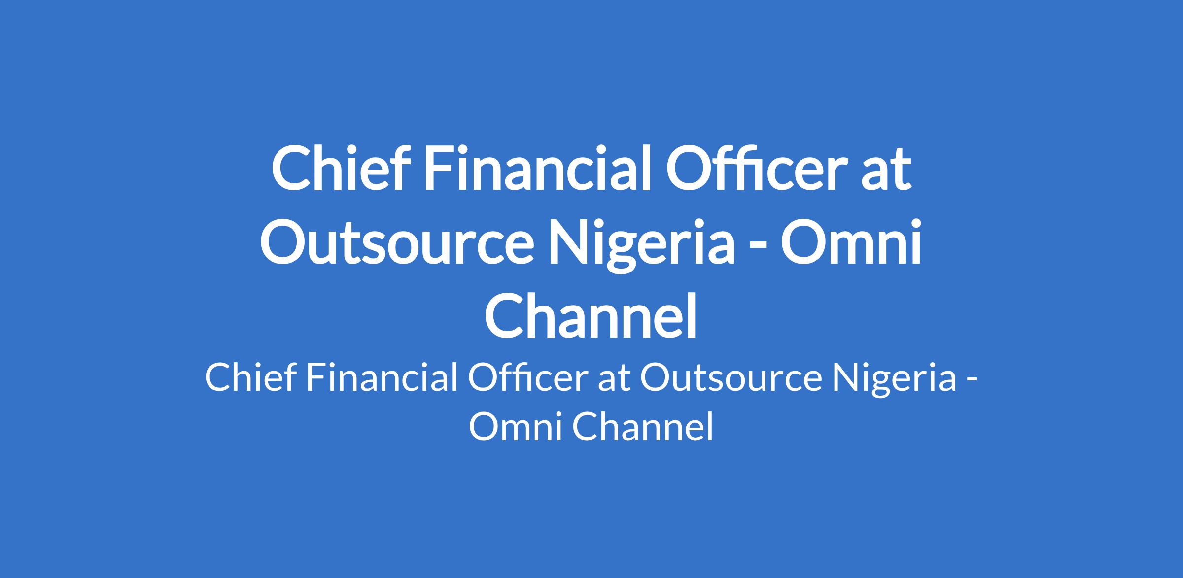 Outsource Nigeria - Omni Channel is recruiting to fill the position of: Chief Financial Officer. The position is located in Victoria Island, Lagos State. Salary: N700,000 - N800,000 monthly. Interested candidates should possess a Bachelors Degree in Accounting, Finance, Economics, or a related discipline with 58 years of progressive financial leadership experience.