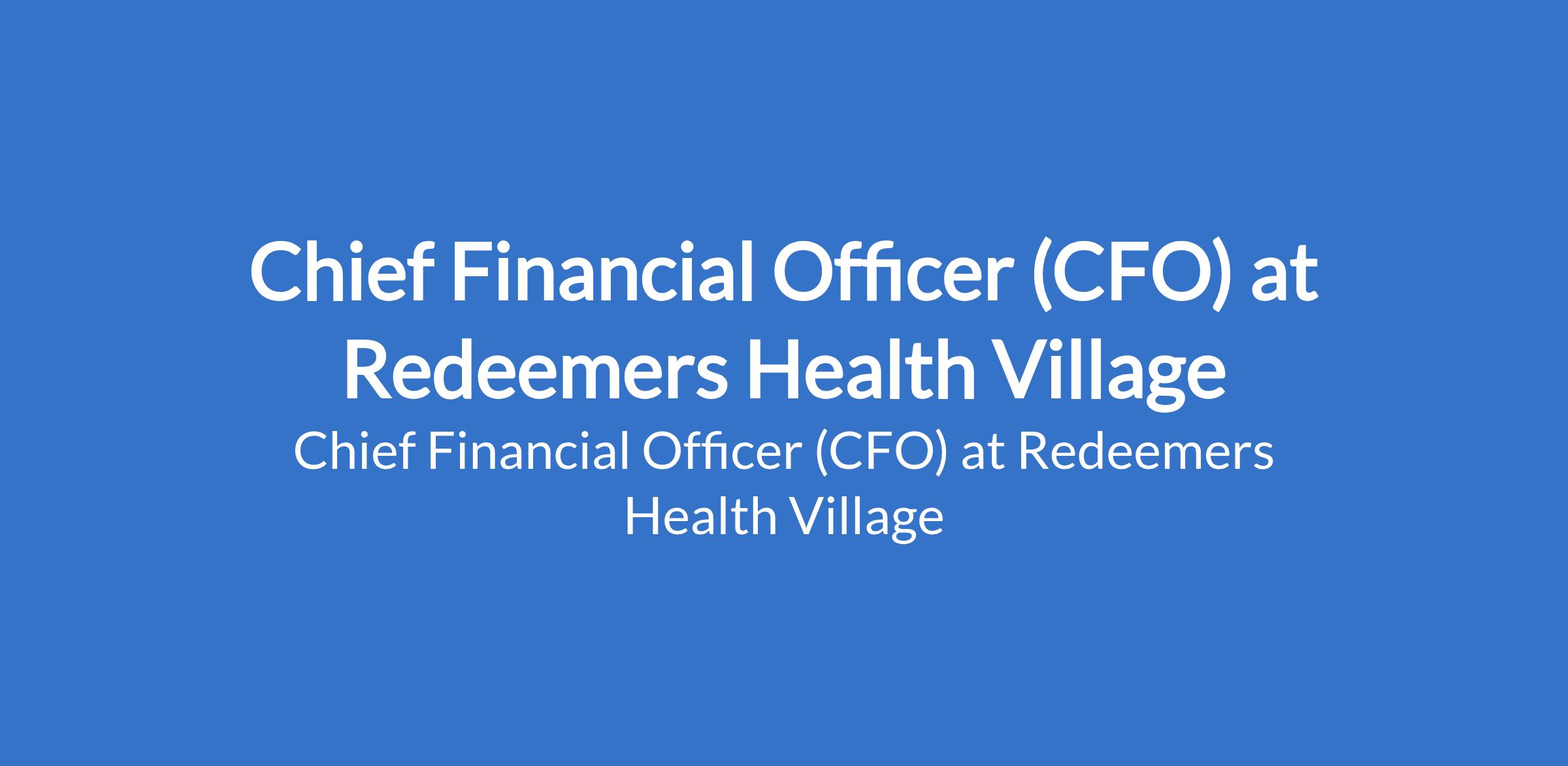 Redeemers Health Village is recruiting to fill the position of: Chief Financial Officer (CFO). The position is located in Redeemers Health Village, Redemption Camp, Ogun State. Interested candidates should possess a Bachelors Degree in Finance, Accounting, or related field (MBA is an advantage), and a professional certification (ACCA, ICAN, CPA, CFA, or equivalent) is required with 1015 years progressive experience, with at least 5 years in a senior leadership role.