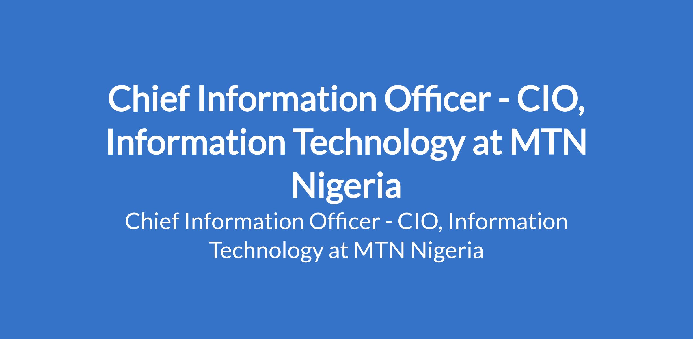 MTN Nigeria is recruiting to fill the position of: Chief Information Officer - CIO, Information Technology. The position is located in Ikoyi, Lagos State. Interested candidates should possess a First Degree in Information Systems with a minimum of 12 years experience within a reputable and structured business environment.
