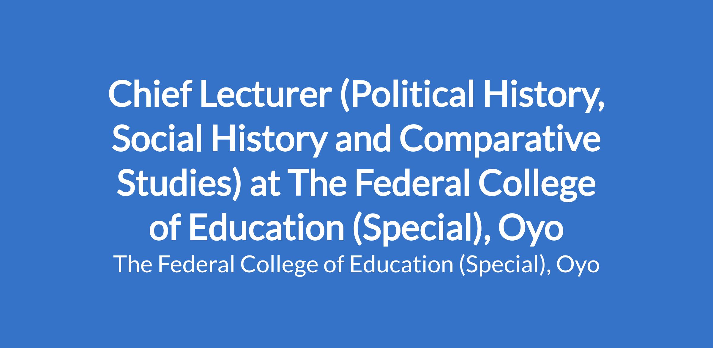 Chief Lecturer (Political History, Social History and Comparative Studies) at The Federal College of Education (Special), Oyo