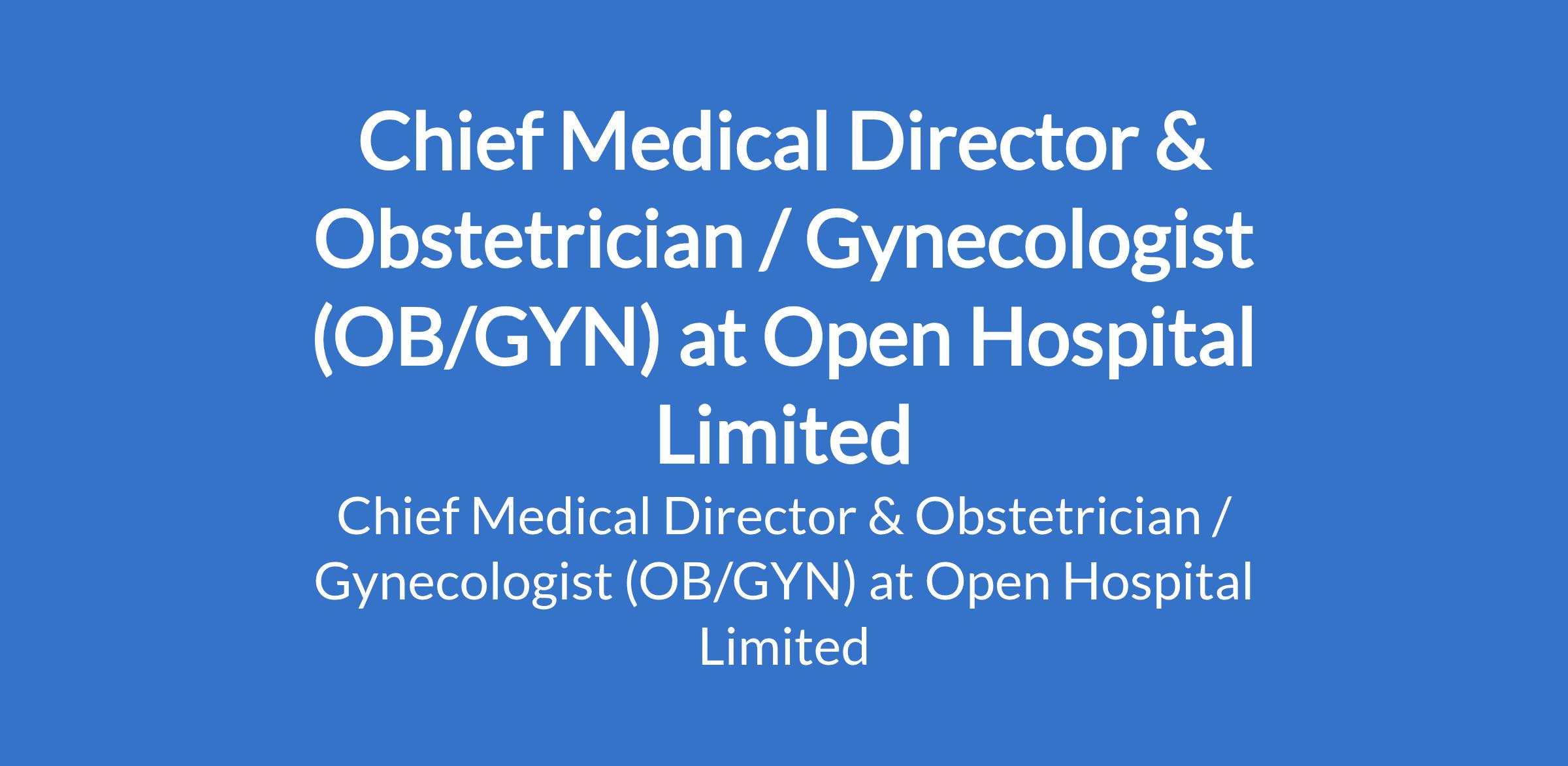 Open Hospital Ltd is recruiting to fill the position of: Chief Medical Director & Obstetrician / Gynecologist (OB/GYN). The position is located in Abuja (FCT). Interested candidates should possess a Medical Degree (MBBS, MBChB, or equivalent) with a minimum of 10 years of clinical experience, with at least 3-5 years in a managerial or leadership position.