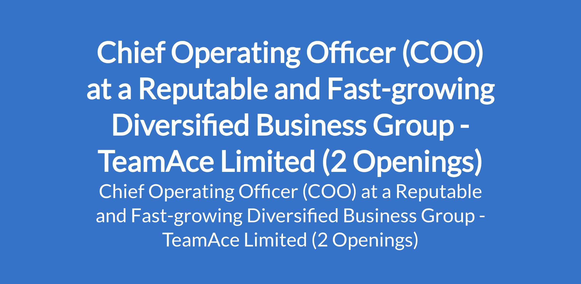 TeamAce Limited - Our client, a Reputable and Fast-growing Diversified Business Group is recruiting to fill the position of: Chief Operating Officer (COO). The position is located in Abuja (FCT) and Lagos State. Salary: N1,000,000 monthly. Interested candidates should possess relevant qualifications with 1015 years experience in operations or general management.