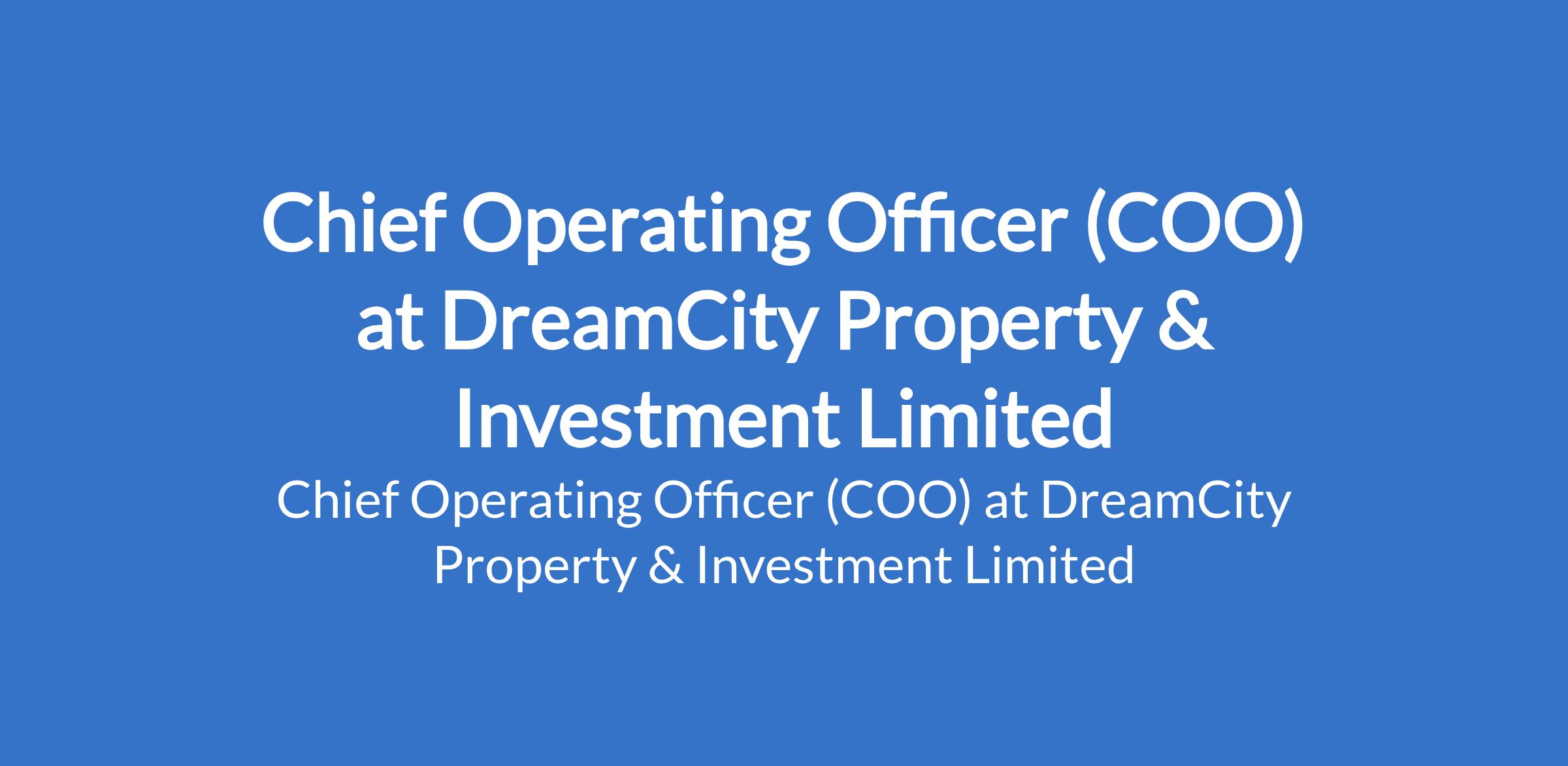 DreamCity Property & Investment Limited is recruiting to fill the position of: Chief Operating Officer (COO). The position is located in Victoria Island, Lagos State. Interested candidates should possess a Master's Degree (MBA or MSc) in Business Administration, Finance, Engineering, or a related field from a recognized institution with a minimum of 10 years progressive, verifiable senior leadership experience, with demonstrated expertise across real estate, investment, finance, construction, fintech, administration, banking, and regulatory compliance, and must be based in Lagos, with flexibility to work extended hours and travel as required by business demands.