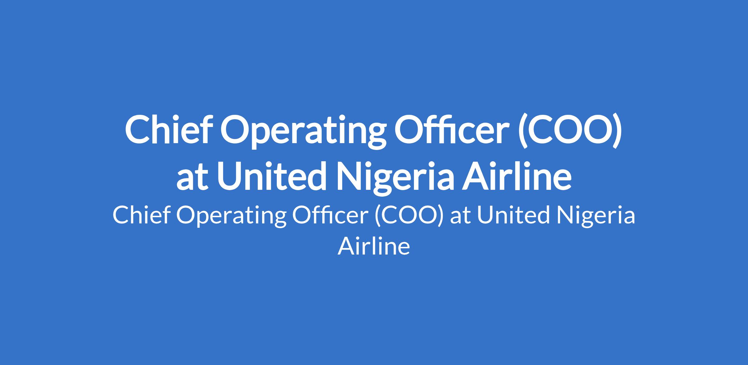 Chief Operating Officer (COO) at United Nigeria Airline